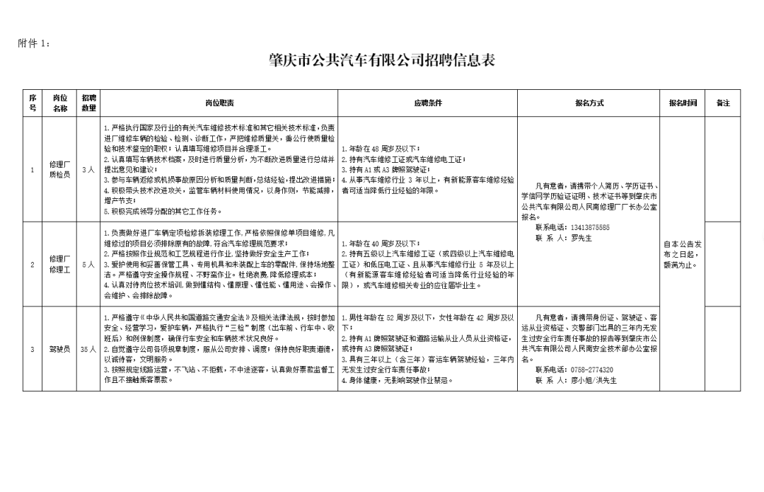 附件:1.《肇庆市公共汽车有限公司招聘信息表》