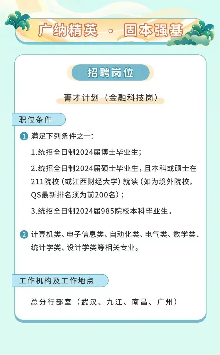 九江银行2024春季校园招聘正式开启