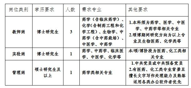 01石河子大学药学院简介 ![]() ![]() ![]() 石河子大学是国家“211工程”重点建设高校、国家“双一流”建设高校、国家西部大开发重点建设高校,入选教育部与新疆生产建设兵团“部省合建”高校。现有博士点10个(包括生物学,化学工程与技术),硕士学位点61个。 ![]() ![]() 石河子大学药学院拥有药学一级学科硕士点、药学硕士专业学位授权点,并拥有药学、中药学、制药工程、临床药学4个本科专业,其中药学、中药学专业为国家一流本科专业建设点,面向全国31个省区招生,在读本科生1134人,研究生278人。药学学科为自治区重点学科和兵团特色优势学科。 石河子大学药学院拥有药学一级学科硕士点、药学硕士专业学位授权点,并拥有药学、中药学、制药工程、临床药学4个本科专业,其中药学、中药学专业为国家一流本科专业建设点,面向全国31个省区招生,在读本科生1134人,研究生278人。药学学科为自治区重点学科和兵团特色优势学科。 ![]() ![]() 学院拥有“新疆植物药资源利用”教育部重点实验室和兵团“红花高效利用协同创新中心”,从药源、药效、药用三方面致力于新疆药用植物资源与生态、植物药活性成分与作用机理和新疆植物药新药及功能食品开发体系化的研究,仪器设备总资产1.1亿元,大学“分析测试中心”等平台药学相关仪器设备2亿元。校外实习基地25个,产学研联合培养研究生基地13家。学院充分发挥综合性大学药学与医学、农学、生物、化工、食品等学科交叉优势,为新疆医药卫生事业发展做出了卓越的贡献。 学院先后与北京大学、华东理工大学、华中科技大学、江南大学等国内多个高层次大学和科研机构建立了相对稳定的对口支援与交流合作关系,为提升教师学术水平和人才培养能力、学生实践提供了良好条件。 ![]() 03招聘人才政策 (一)石河子大学人才政策 1. 卓越领军人才 在国内外本学科具有重要声誉和显著影响力,取得突出学术成就的专家学者,保障团队式引进,提供全面优厚的薪酬、生活等待遇,充足的科研、招生等支持条件,采用一事一议。 2. 青年骨干人才 学院根据不同学科人才紧缺程度和引进人才综合业绩分为三个层次,并兑现 相应的人才待遇,具体要求见《石河子大学引进博士人才优惠政策》。应届,往届。 ![]() 3. 其他配套政策 (1)引进人才及其配偶、子女、双方父母可在师市范围内落户,按师市公安机关户籍管理规定携带相关证件办理落户。 (2)引进人才配偶、子女愿意留师市工作,属体制内的由组织、人社等部门会同用人单位,按“对口对应”原则协助安排工作;属体制外的,由公共就业服务机构积极帮助推荐,并做好相关服务工作。 (3)引进人才子女就读义务教育阶段学校、幼儿园和高中阶段学校,根据师市教育部门制定的相关政策实施,优先予以安排。 (4)获人才称号后将发放“优才卡”,(具体优惠政策参见“石河子优才卡”服务指南) 1.具有中华人民共和国国籍,拥护中华人民共和国宪法,维护祖国统一和民族团结; 2.热爱教育事业,符合高校工作者行为规范,有强烈的责任感和奉献精神; 3.具有良好的道德品行和正常履行职责的身体条件; 4.具有符合岗位要求的学历学位与工作能力; 5.具备岗位所要求的其他资格条件; 6.国家机关和国有企事业单位在职人员报考的,须提供所在单位出具的同意报考证明。 2024年4月1日 (具体流程详见石河子大学2024年第二阶段公开招聘事业单位工作人员公告 https://www.shzu.edu.cn/2024/0311/c3a199181/page.htm) 06招聘有关事项咨询 招聘邮箱:120913178@qq.com 联系人:郅洁 联系电话:0993-2057005 图文来源|石河子大学药学院 |