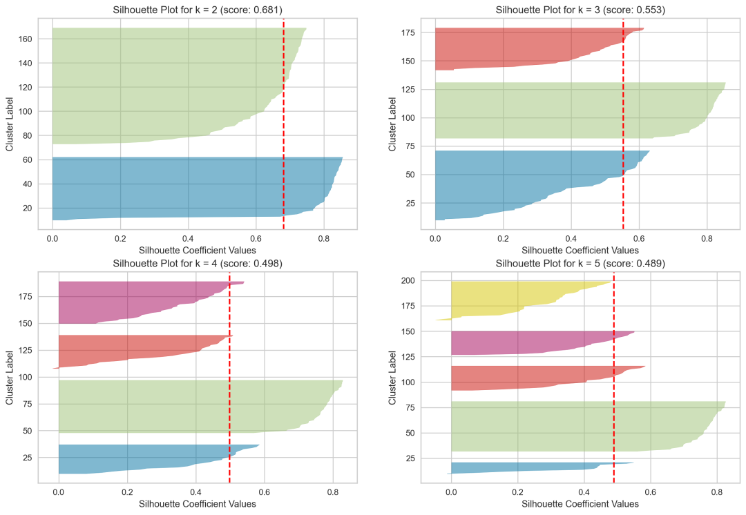 # Store silhouette scores in a dictionary for later use silhouette_scores = {}
