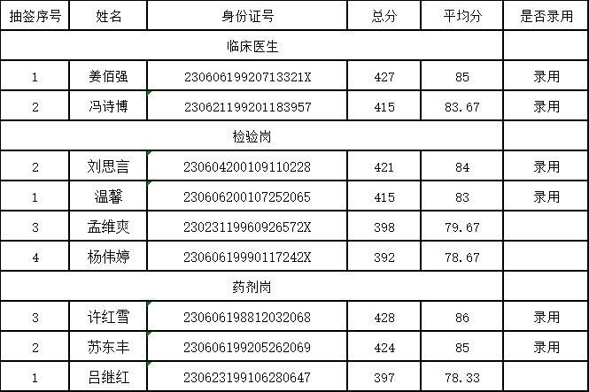 本着公平公开公正的原则,大庆市中西医结合医院招聘编外医务人员工作,已于2024年03月12日完成,现将考试成绩进行公示(按照考试成绩进行公示),公示期三天。成绩如下: