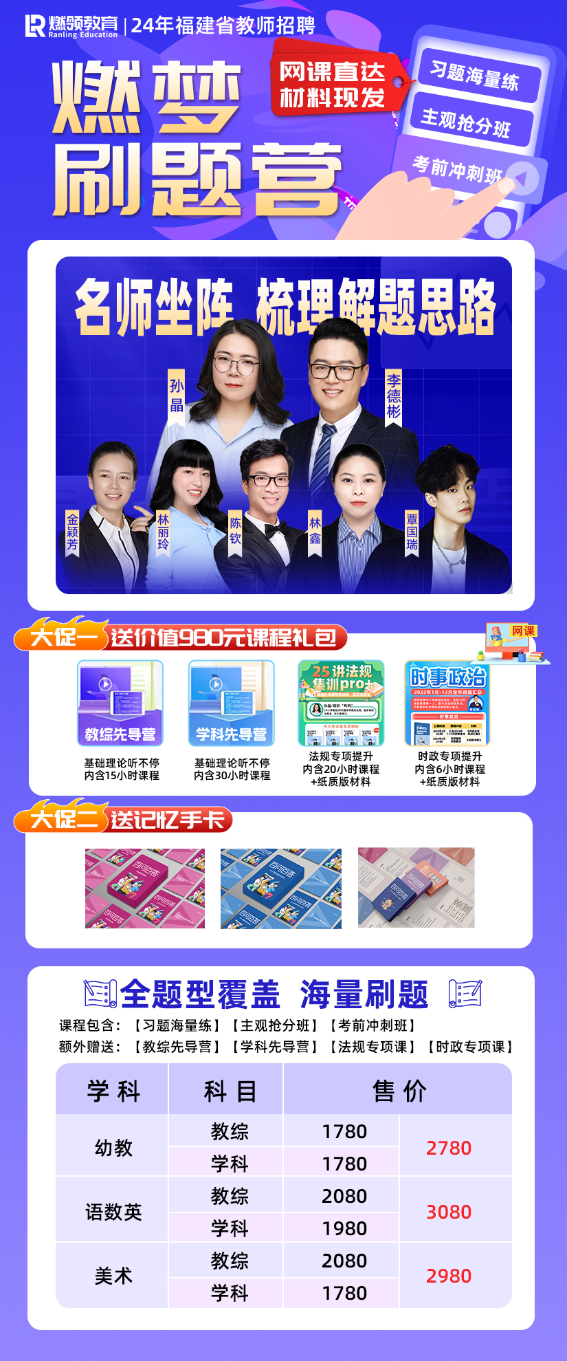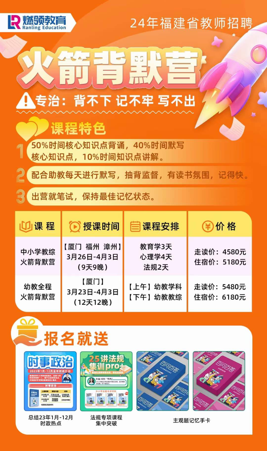 重磅! 教招报名人数更新啦! 快来看看你的岗位报名了多少人! 临近考试,有的同学,在家里复习效率低下,每天出现背不下,记不住的情况。心态要崩掉,没有信心,很多同学强烈需要一个强有力的核心组织来。 燃领默背营,9天9晚的时间里,认真负责的燃领老师会手把手带班,订制指导,严格监督帮你摆脱拖延症,让教综背诵有方向不迷茫,有思路不困惑! 适合人群:不自律、复习效率较低、心态不佳的同学。 1. 根据教育综合知识科学合理分割背诵默写任务+知识点串讲 2. 每部分开始前老师会带领梳理该部分逻辑关系。 3.每日提问默写,侧重答题指导和每日总结强化知识点记忆。 4.一对一检查背诵进度,严格记录个人学习情况,提问抽查了解复习程度,分阶段答疑指导。 5. 因材施教,提供合理背诵方法,适宜背诵建议。 6.根据学员背诵情况及时跟进和评价。 7.温暖正能量的督背老师,让自己舒缓压力,轻松备考。 帮你锁定考点 燃领带课经验丰富的老师,保姆式带背、科学的规划,手把手教你如何抓住课本重点,在短期内实现高效背诵!我们将对大家手头的笔记进行知识点重点的规划,帮助大家把笔记越背越薄,知识越记越牢! 助你高效学习 备考过程中,必须清楚一个目标:在有限的时间内,搞定最多的“考点”,做到“考什么学什么”。对于入场较晚的同学而言,复习时间本就紧张,所以更要锁定高效学习目标,争分夺秒了解这个题会怎么出题、该怎么应对。 重要考点拓展 默背营只背教材是远远不够的,还需要拓展相关的知识点。如何在答题中获得更高的打分,才是最重要的! 组团打卡氛围浓 许多考友陪你一起打卡,氛围感更浓哦。看到别人努力,自己也更有动力! 答疑直击焦虑 最后时间了,大家难免在心态上会有一些摇摆不定,燃领直接给你温暖的鼓励,教你保持心态,合理调节焦虑感。 ![]() ![]() ![]() ![]() 教招考前提分包,14.9包邮 时政法规网课,即将开课 立足福建,考情一网打尽 快添加燃领老师预约吧 ![]() 获取更多教招资讯、课程优惠 |