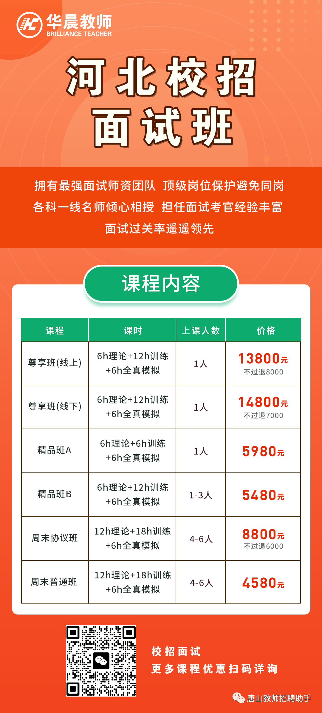 了解选聘/事业单位教师编制考情 笔、面课程/进唐山教招备考群/时政打卡 可添加小晨微信 15633436675 为满足我区教育系统对高层次人才和紧缺学科教师的需求,根据《事业单位人事管理条例》《河北省事业单位公开招聘工作人员暂行办法》,我区拟面向高校毕业生组织选聘教师111名,具体事项公告如下:坚持德才兼备,民主、公开、竞争、择优,实行公开选聘,在测评、考核的基础上择优聘用。选聘事业编制教师111名。具体选聘人数和岗位条件详见《唐山市路北区2024年赴高校选聘教师岗位信息表》(附件一)。教育部直属师范大学、“双一流”大学和各省师范大学 2024 届本科及以上学历普通类高校毕业生(附件二)。2024届高校毕业生是指纳入国家统招计划、被普通高等院校录取的2024年高校毕业生。硕士研究生及以上学历2024届毕业生本科需是统招普通类高等院校毕业。根据省政府办公厅《转发省教育厅等部门<关于河北省省属师范院校师范生公费教育实施办法(修订)>的通知》(冀政办字〔2017〕158号)精神,已经与相关县区签订就业协议的公费师范生不在本次选聘范围之内。(五)适应岗位要求的身体条件,身体素质符合现行《公务员录用体检通用标准(试行)》要求;(六)具有与报考岗位要求相适应的相应学科教师资格证,暂未取得教师资格的人员,可持在有效期内的相应教师资格考试合格证明或笔试合格成绩(即“中小学教师资格证考试NTCE成绩”,中职教师资格为两科笔试成绩,初中、高中教师资格为三科笔试成绩)报名应聘。严格“持证上岗”,所有拟聘人员在办理聘用手续前需取得相应的教师资格。根据《教师资格条例》第五条的规定取得教师资格的公民,可以在本级及其以下等级的各类学校和其他教育机构担任教师;高级中学教师资格与中等职业学校教师资格相互通用。(七)年龄要求在18周岁及以上、30周岁及以下(1993年3 月14日至2006年3月13日期间出生)。(八)符合与所报岗位相适应的国家承认的学历学位和专业要求。岗位条件中专业要求为“具体专业名称”的,须一字不差(设定的专业要求带括号的,审核时含括号中的内容),“具体专业名称”包含研究生二级学科名称。现役军人、试用期内的公务员和试用期内的事业单位工作人员、未满最低服务年限或未满约定最低服务期限的人员、在学校受过严重警告及以上处分的人员、2024年8月1日及以后毕业的高等院校普通类在读学生,不在选聘范围。因犯罪受过刑事处罚的人员、被开除中国共产党党籍的人员、被开除公职的人员、被依法列为失信联合惩戒对象的人员,以及法律法规规定不得招聘为事业单位工作人员的其他情形人员。根据唐山市人民检察院、唐山市公安局等六部门联合印发的《对密接未成年人行业特岗人员实行入职查询长效机制实施办法(试行)的通知》要求,有人民法院作出的有罪生效裁判、人民检察院作出的不起诉决定、公安机关依法作出的行政处罚决定等违法犯罪记录的人员,不得报考中小学校、幼儿园、文艺体育等技能训练机构、未成年人救助保护机构、儿童福利机构、为未成年人提供医疗服务的医疗机构、青少年活动中心、少年宫、青少年科技馆、少年儿童图书馆等相关密切接触未成年人的岗位。此外,报名人员不得报考聘用后即构成回避关系的选聘岗位。回避关系包括《事业单位人事管理回避规定》第六条和《河北省事业单位公开招聘工作人员暂行办法》第四十一条所列情形。本次选聘按照发布公告、报名、考试、资格审核、体检、考核、公示、备案、聘用等程序进行。从2024年3月12日起在部分省重点师范院校和双一流高校就业指导中心发布选聘公告。1.报名时间:2024年3月14日9:00至3月22日17:00。应聘人员须在报名截止时间前,将报名登记表及相关材料形成压缩包文件并发送到指定电子邮箱;其中,报考唐山市第一职业中等专业学校、唐山市第十二初级中学、唐山市第二十七中学的考生将报考材料发至lbxp2020@163.com(首字母l为英文字母L的小写);报考唐山市第十二高级中学、唐山市二十一中教育集团(唐山市第二十一中学)、唐山市二十一中教育集团(唐山市第三十中学)、唐山市第三十五中学的考生将报考材料发至lbqxp20@163.com(首字母l为英文字母L的小写);报考唐山市五十四中教育集团(唐山市第五十四中学)、唐山市五十四中教育集团(开滦第十七中学)、唐山市龙泉教育集团(唐山市龙泉中学)、唐山市龙泉教育集团(唐山市龙华中学)、唐山市龙泉教育集团(唐山市凤凰中学)的考生将报考材料发至lbqxp123@163.com(首字母l为英文字母L的小写)。邮件主题注明姓名、选聘单位及岗位名称、联系方式(如张某-xx学校-xx教师-13xxxxxxxxxx)。每人限报一个岗位,报错邮箱视为报名无效。请考生保持报名时所留联系电话的畅通,因所留联系电话无法接通造成的后果自负。报名时间截止后,工作人员将以邮箱回复或电话形式通知审核合格人员下一环节具体事项。其中以邮箱回复为首选通知方式。(3)教育部学籍在线验证报告或高等教育学历电子注册备案表;(4)《唐山市路北区2024年赴高校选聘教师报名登记表》Excel版(附件三,表上需上传正规电子照片)。通过报名审核者进入面试环节。面试委托第三方组织实施,以“试讲+答辩”(线下)的形式进行。试讲教材为所报考学科岗位现行教材,试讲题目由评