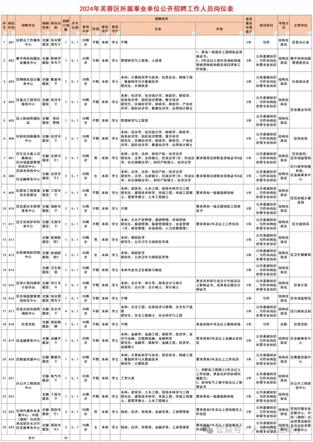 根据《事业单位人事管理条例》(国务院令第652号)、《事业单位公开招聘违纪违规行为处理规定》(人社部令第35号)和《湖南省事业单位公开招聘人员办法》(湘人社发〔2019〕1号),结合我区工作需要,经研究,决定面向社会公开招聘事业单位工作人员35名。列入相应事业单位编制,实行合同聘用制管理。其岗位等级待参加单位竞聘后确定。