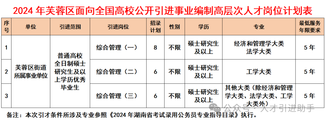 1.2024年芙蓉区面向全国高校公开引进事业编制高层次人才岗位计划表