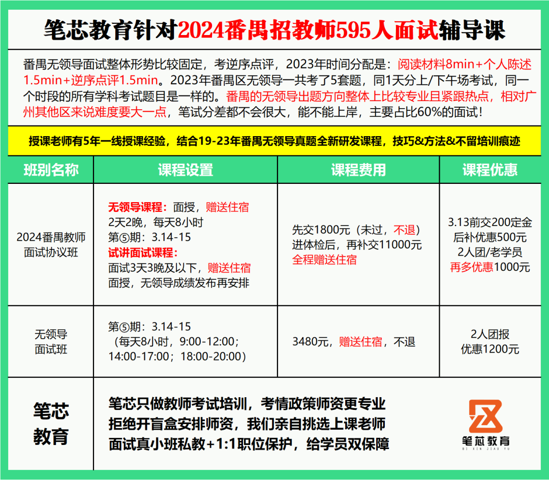 有需要可以私聊笔芯任意老师,免费获取无领导课程视频!笔芯整理了19-23年番禺无领导面试真题和23年音体美技能测试内容,私聊老师获取!