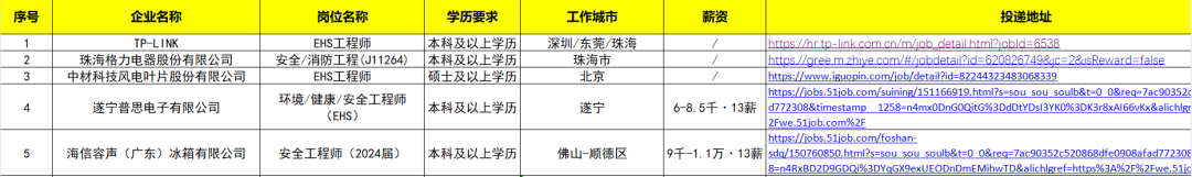 不得不说,很多公司的EHS校招信息比较不容易获取,这些公司往往是行业内知名但不被大众知晓,其实他们的待遇也不差哦,学长要做的就是抹平信息差同时也节约大家搜集信息的时间,让安工学子通过我都能轻易挖掘到平常不容易发现的岗位。