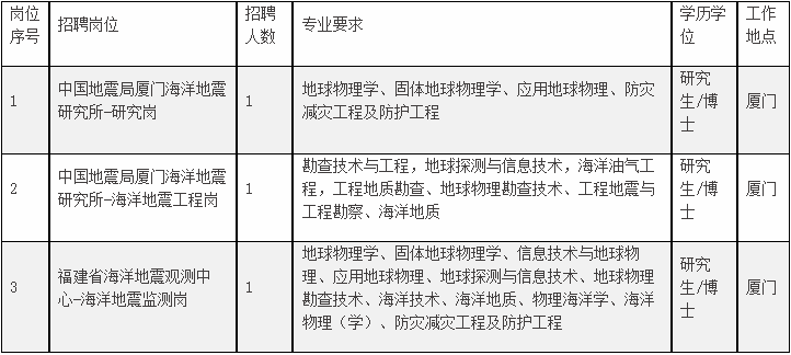 福建省地震局系中国地震局在闽直属事业单位,根据《事业单位人事管理条例》《事业单位公开招聘人员暂行规定》和《中国地震局进人管理办法》,拟公开招聘博士研究生3名,具体方案如下: