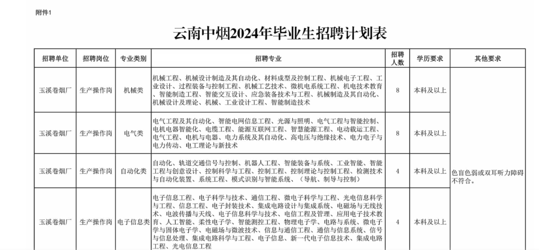 5.符合《云南中烟2024年毕业生招聘计划表》设置的专业、学历、外语等要求,具备与招聘岗位相匹配的能力和素质;