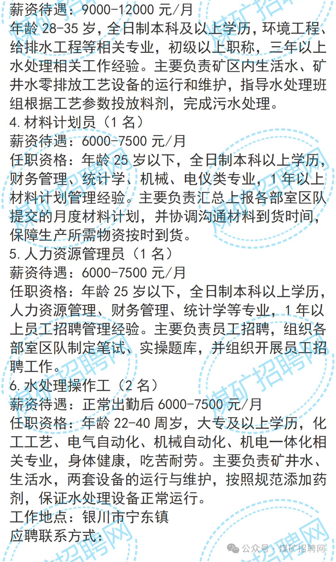 宁夏银川宁东90万吨基建矿井(宁夏京盛煤业)招通防主管1人: