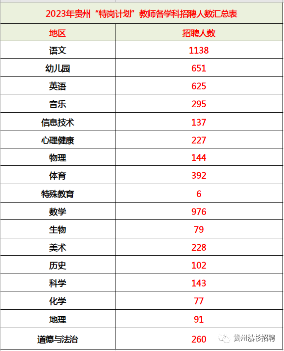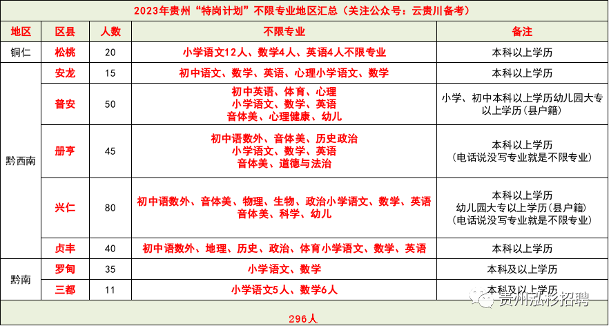 2023年贵州“特岗计划”不限专业地区汇总