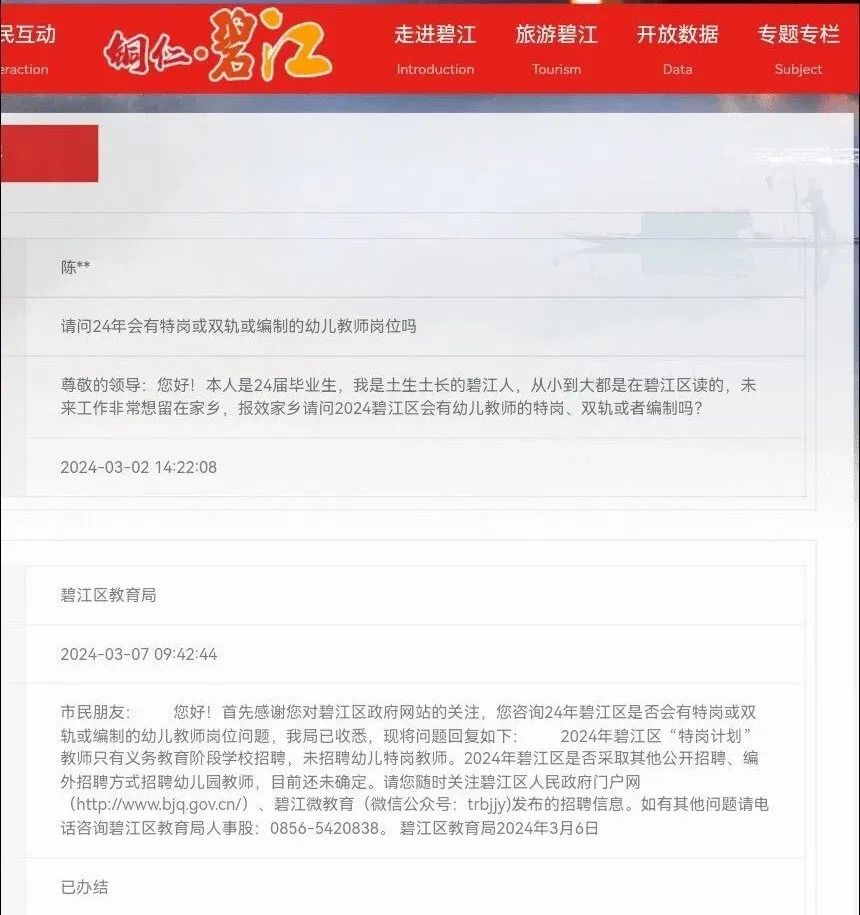 根据铜仁市碧江区官网近期答复网友咨询得知