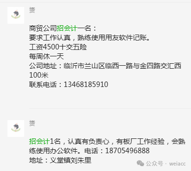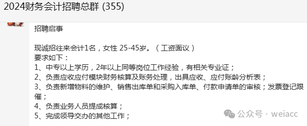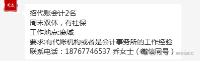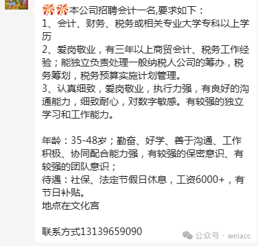 目前财务会计岗位空缺信息, 联系方式和详情可以加群交流