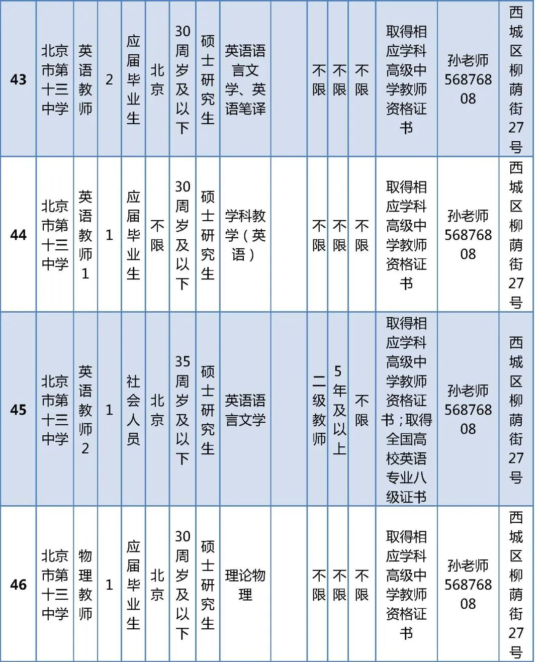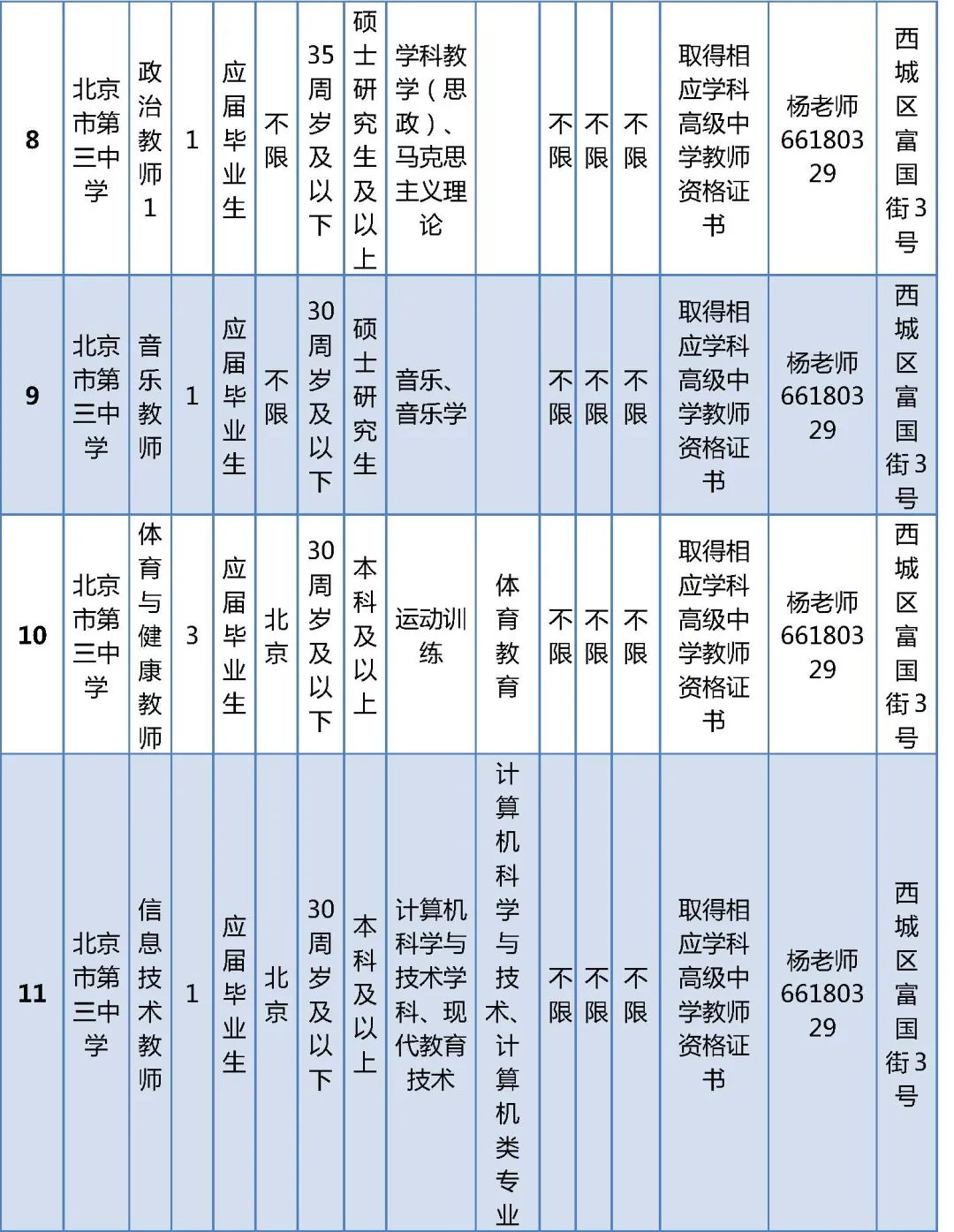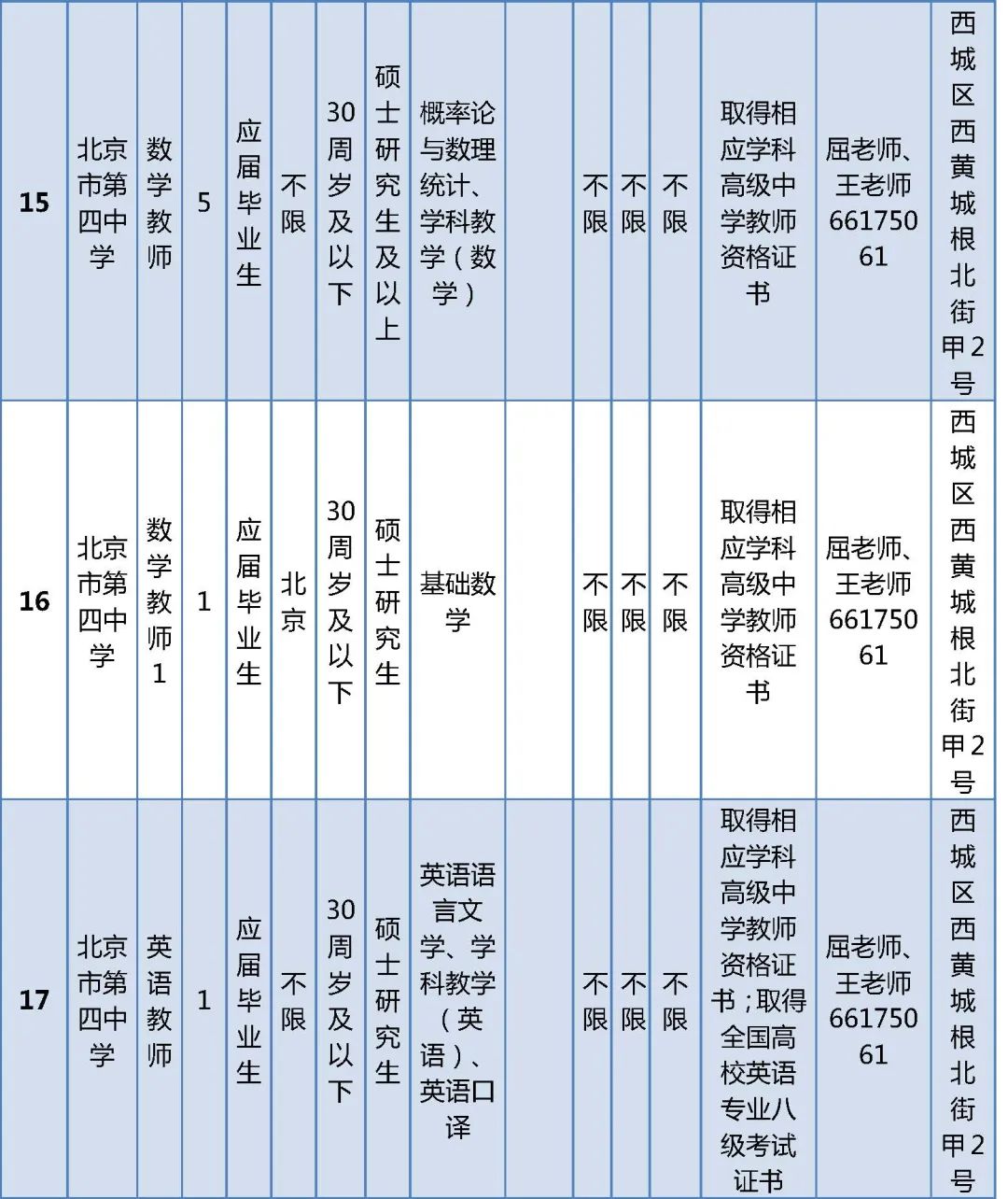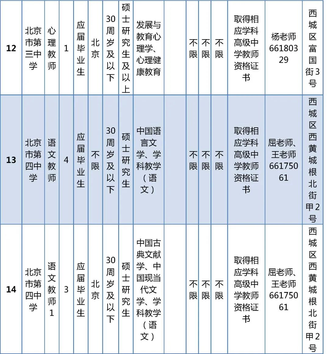 2024年北京市西城区教委所属事业单位面向社会公开招聘教师764名,报名时间为2024年3月12日(周二)10:00至2024年3月13日(周三)17:00。