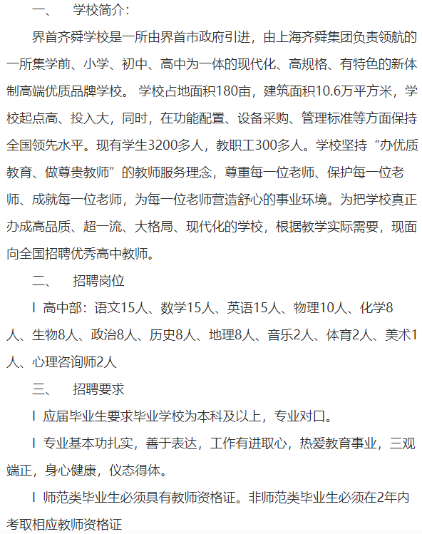 就业指导丨安徽阜阳界首齐舜学校教师招聘102名公告