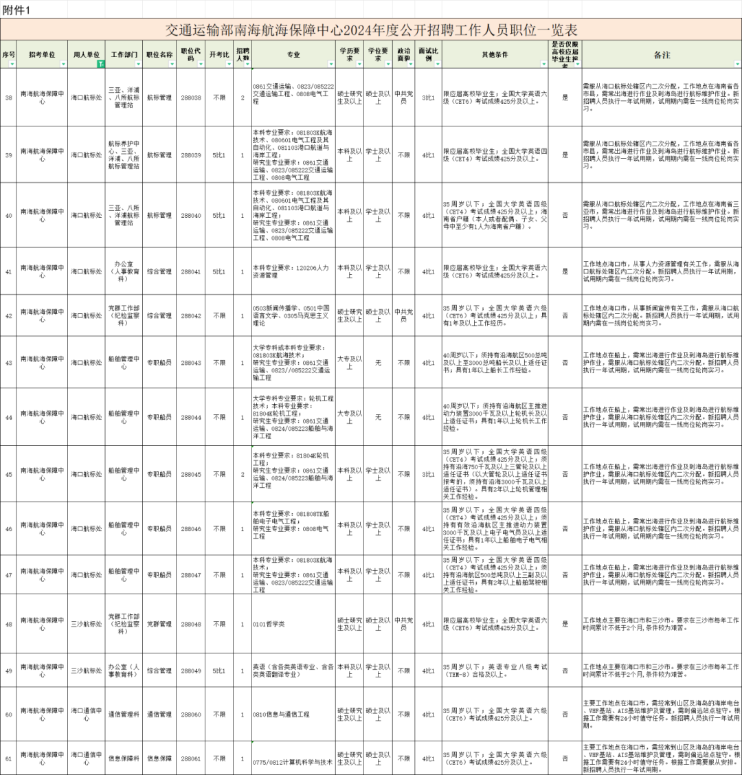 1.交通运输部南海航海保障中心2024年度公开招聘工作人员职位一览表