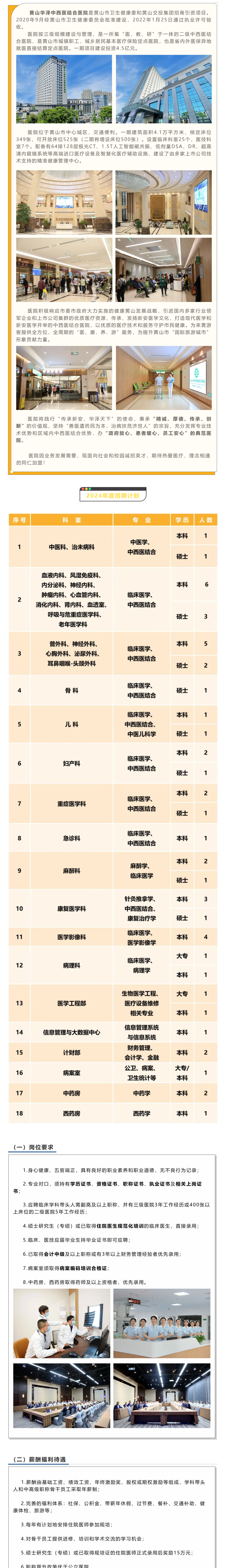 >2024年黄山华泽中西医结合医院招聘50人公告