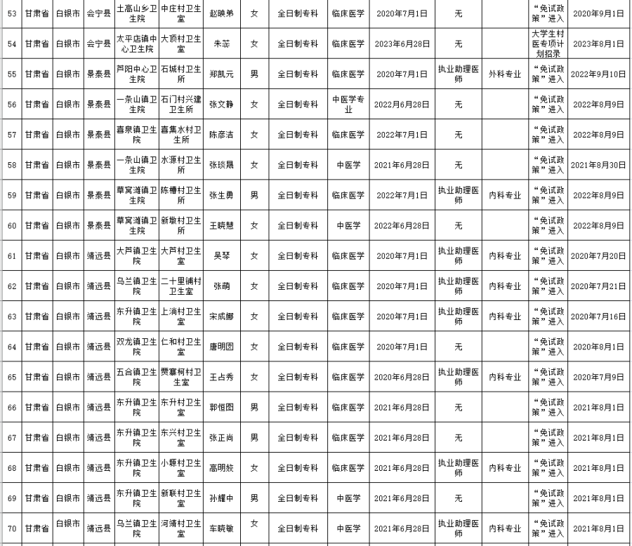 白银市大学生乡村医生已招录人员专项招聘工作的公告