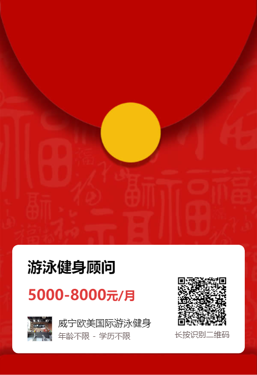 威宁招聘游泳健身顾问若干人!工资待遇5000-8000+提供住宿