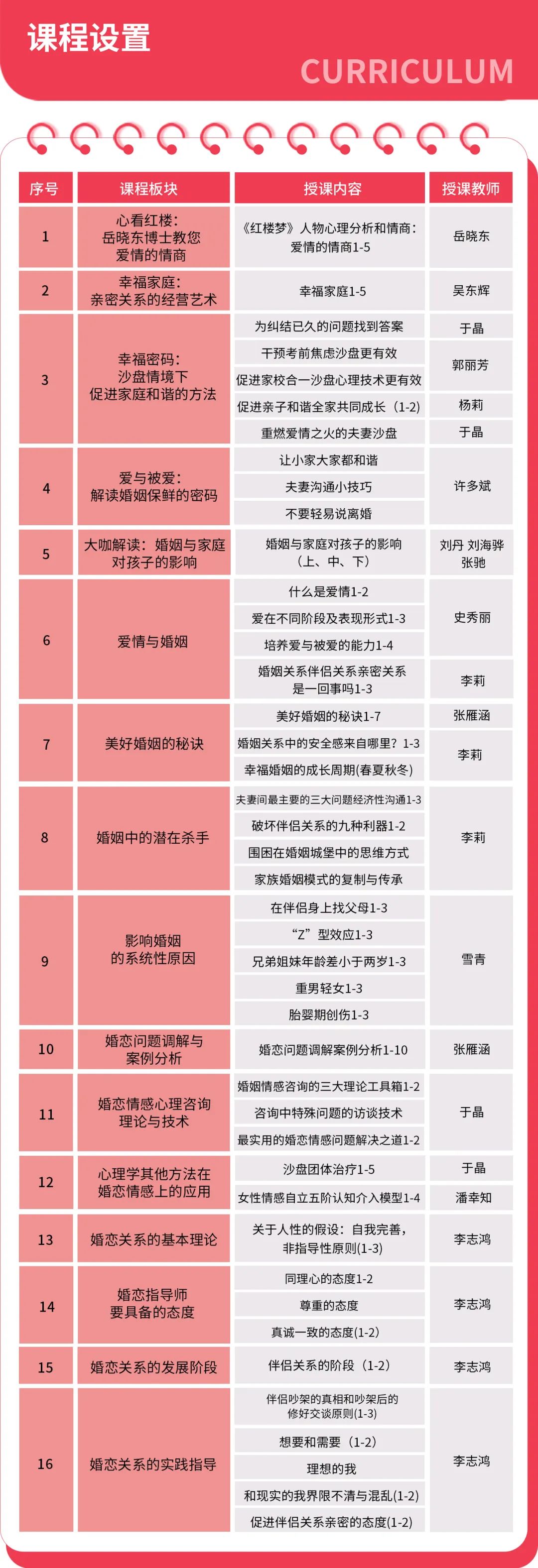 妇女儿童服务机构、社区居委会、婚姻家庭服务机构、心理咨询机构、青少年教育培训机构、早教机构、幼儿园、大中小学等相关工作人员。让相关从业者全面掌握婚恋系统咨询工作所需的各项技能,打好理论基础带入案例提高实操能力。