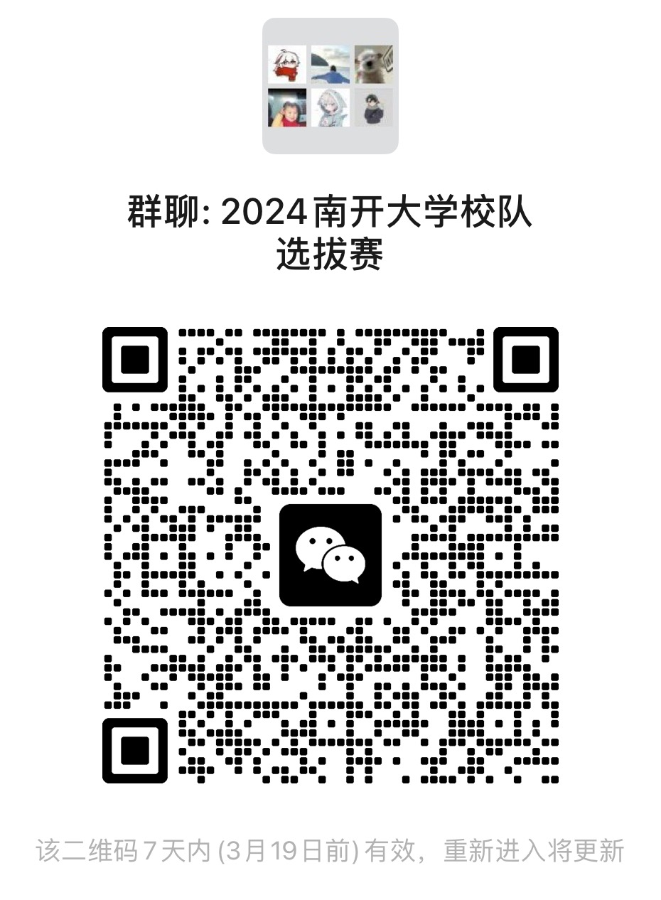 所有参赛选手扫描下方二维码入群,进群后自行联系群主提供满足报名条件的相关证明。进群后请同学们立刻将名字改为校区+性别+名字,例:八里台+男+张三。