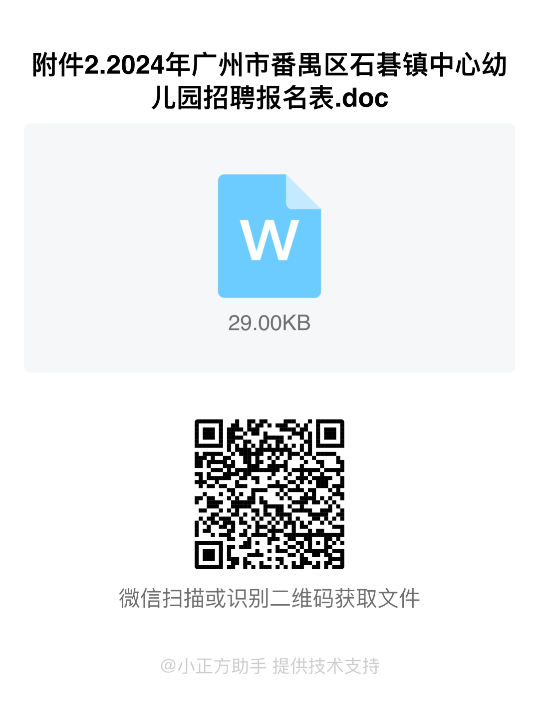 1.提交《2024年广州市番禺区石碁镇中心幼儿园招聘报名表》(附件2)。