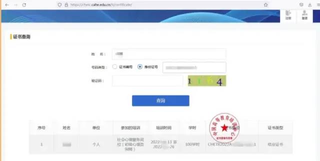 3、证书查询及下载 考试合格的学员可通过高培中心官网(https://chetc.cahe.edu.cn/h/certificate/)查询个人证书信息。