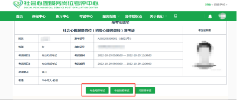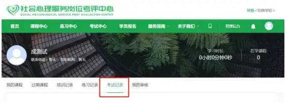 2、中心组织考试 除2次全国统一时间考试外,北极星心理各地合作机构可提交申请,确认后按照要求组织学员考试。 考试预约和取消 1、培训点统一预约; 2、学员自行预约; 3、预约条件 学员预约考试必须满足线下40学时,线上60学时方可预约考试,缺一不可; 备注: 1)个人培训学时查看路径:点击个人头像-学习中心-培训记录,查看“已完成学时”; 2)学时数据说明:看完一个章节才算完成一个学时,中途离开页面不计入已完成学时,但计入学习时长,所以部分学员会出现学习时长超过已完成学时的情况; 4、取消预约 学员预约考试后,如有特殊原因无法参加考试的,请于考试预约截止一个工作日前联系全国社会心理服务岗位考评中心,进行考试预约的取消; 学员预约后,登录学习平台,进入考试中心-立即考试 即可查看和打印准考证。1)考生携带准考证,经监考老师核查,提前进入考场;
