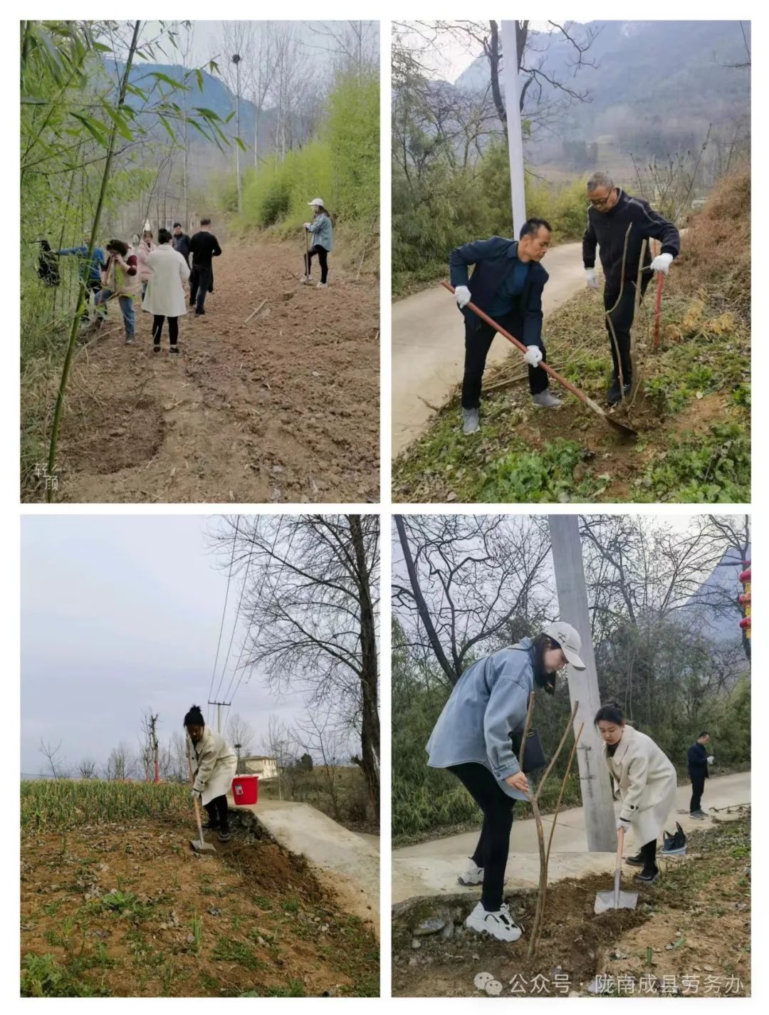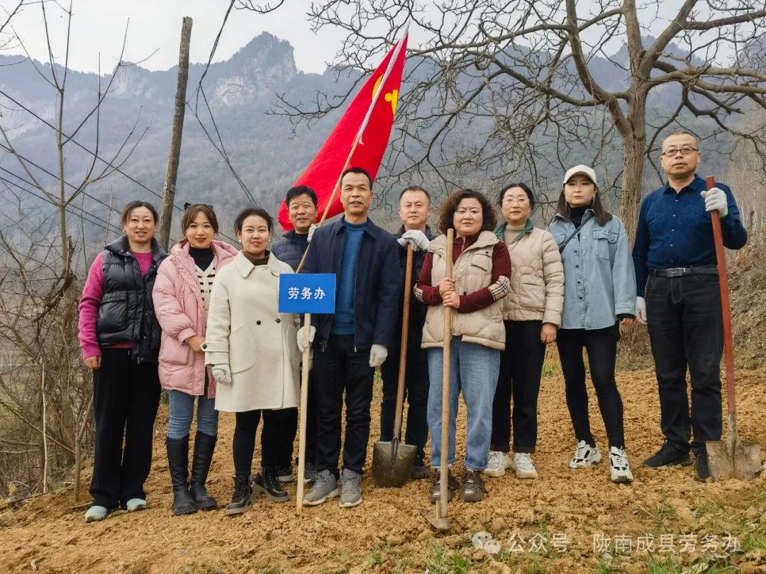 阳春三月,万物复苏,正是植树添绿好时节。2024年3月12日,由成县劳务办张社带队,劳务办全体党员干部在成县城关镇南山片区开展义务植树活动。