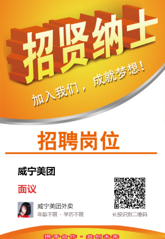威宁美团外卖老城站招聘全职!学历不限+经验不限+工资面议