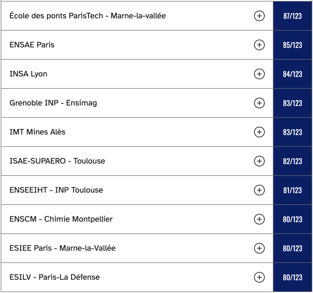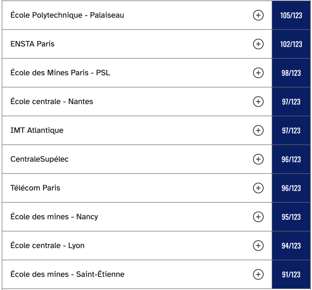 关注我们,实现留学梦想 2024年1月18日,《L’Étudiant学生报》发布了法国工程师学校榜单。作为法国本土的教育媒体。今年L’Étudiant的排名涵盖了170所工程师院校,包括公立院校和私立院校、衔接高考、预科。所有工程师院校均提供硕士课程,并授予工程师文凭。 ![]() 排名标准涉及到以下几个因素:卓越的学术水平 、校企关系、国际化 、环境 、职业整合、社会开放程度。总分为123。今年排名标准有两项变化: 1️⃣ Alternance 将往年只作为一部分指数标准的"Alternance学生比例"变为一项总分为10分的独立分类标准;以促使工程师院校不再将"Alternance"视为资助学习的一种手段,而是将其视为一种教学法和一种教学方式。 2️⃣ 重视“环境” 与 2023 年的1分相比,获得"DD&RS "标签(高等教育机构的"可持续发展和社会责任"标签)现在可计入2分。如果学校制定了详细说明其政策和承诺的总体规划,则可额外获得1分。 📊 TOP20排名如下: ![]() ![]() ✦ + + 亮点院校介绍 1 巴黎综合理工学院 法国的「麻省理工」 ![]() 今年,巴黎综合理工学院再次以 105 分的高分蝉联榜首。该校是一所公立的教学、科研机构,隶属于法国国防部,被认为是法国最顶尖的工程师大学,在法国各类院校中长年排名第一,被誉为法国精英教育模式的巅峰。 ![]() 毕业生大多进入法国或者国际上的私有企业高层,近半数以上(三分之二)的法国企业的首席执行官(CEO)均毕业于此,更有20%成绩优异的学生选择进入国家高级机关。巴黎综合理工学院是三任法国总统的母校,诞生过四位诺贝尔奖得主,同样现任法国总理也曾在此就读。👉点击了解更多 2 巴黎国立高等工科学院 ENSTA Paris 巴黎国立高等工科学校以102分稳居第二。该校是一所著名的法国工程研究生院,是法国最古老的“大学校” 。 ![]() 它是巴黎理工学院的组成学院,位于巴黎萨克雷校区内。学校有一半的学术研究由法国国家科学研究中心(CNRS)、法国国家健康与医学研究院 ( INSERM ) 以及在 ENSTA 所在地工作的巴黎综合理工学院的研究人员进行。 3 巴黎高科国立高等矿业学院,连升5名夺得TOP3 国立巴黎高等矿业学院(MINES ParisTech)是一所法国顶尖的精英工程师“大学校”。由法国国王路易十六创办于1783年,旨在培养“矿业人才的领袖”。当时采矿业还属于高科技工业,随着历史演进、科技进步和社会转型,学院逐渐成为一所培养“通用”(Généraliste)工程师的多学科交叉的大学校。 ![]() 国立巴黎高等矿业学院目前为巴黎文理研究大学(PSL)和巴黎高科集团(ParisTech)的一员。作为高等工程师学院,肩负的使命是:培养工程师、科学研究以及管理某些公共服务活动(图书馆及矿物标本收藏)。 5 南特大西洋矿业电信学院,计算机专业No.1 ![]() 法国大西洋高等矿业电信学校(IMT Atlantique)是一所结合数字化、能源和环境科学的工程师学校,它由法国南特国立高等工程学院Mines de Nantes和法国布列塔尼高等电信学院ENSTB合并而来,培养工业系统工程领域的全科工程师。2024的计算机专业排名中IMT Atlantique成功超越Télécom Paris巴黎高等电信学院,成为法国第1 6 南特中央理工学院,全英授课的高质素学院 ![]() 南特中央理工学院成立于1919年,是法国最好的5所工程师大学之一,也是法国工程师A+院校。学校以培养工程师学生为主,同时也提供硕士以及博士学位。工程师学生学期为3年(bac+5),硕士为两年,工程师文凭相当于硕士文凭。南特中央理工一直被视为法国社会精英的摇篮。南特中央理工是一所相当国际化的大学,国际学生占全校学生43%,来自全球87个国家。 THE END 你的心动院校表现如何呢? 对工程师院校排名和申请要求有其他疑问 欢迎扫码咨询我们! ![]() 了解更多 你一定想不到!这间大学竟然连续两年QS可持续发展方向中大学排名第一! 翻旧账!法国前总统萨科齐被判处1年监禁……同时在法硕士申请平台Mon Master即将开放报名