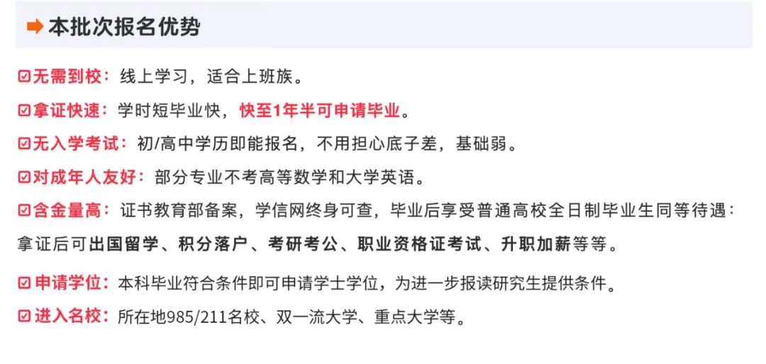 为提升全社会人群职场竞争力,加快教育资源均等化的步伐,全力构建服务全民终身学习的教育体系。 现资助10000名在职员工+社会人员参加成人学历教育,不限学历、不限户籍,无需参加高考,即可申请入读本科学历。 符合提升学历条件的报名学员——均可申领3000-8000元报名补贴!报名时间截止至3月14日下午18:00,限招100人,名额招满则提前截止。 ↓添加招生办老师咨询报名↓ 扫码进入咨询通道 查询是否符合报名条件 ![]() 报考期,咨询学员较多,二维码加载较慢 请耐心等待~ 单 位 概 况 主办单位:成人继续教育平台 考籍管理:省(区)级自学考试委员会办公室 教育形式:高等教育本、专科学历教育 学历查询:国家认可,中国高等教育学生信息网(学信网)可查 学习形式:网络学习、不限地点