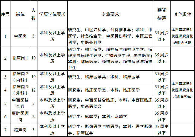 1.从事临床医学类专业的全日制本科毕业生取消试用期三个月,绩效工资按医院规定发放,两年内未取得医师执业资格,按照医院相关规定发放绩效。3.持有三甲医院规培结业证的全日制本科补助5万元安家费。4.医院协助其解决国家正式编制,没解决编制前,所有待遇按照编制内人员对待。符合下列条件之一的纳入考核招聘:获得国家奖学金(不含国家励志奖学金)或评定为校级以上优秀毕业生或获得校级三等以上奖学金或“世界一流学科”建设学科毕业或世界高校前500位的国(境)外高校毕业。5.全日制非临床医学专业实行试用期三个月,试用期内待遇按照重庆市最低生活保障金执行。试用期满经考核合格后聘用,聘用后待遇按照医院制度执行。1.全日制硕士研究生毕业取消试用期,从事本专业硕士研究生绩效工资按相应专业中级职称对待。2.从事本专业硕士研究生,医院协助申请县委人才办 75 平方米人才公寓。1.博士生毕业取消试用期,从事本专业博士生绩效按相应专业高级职称对待。023—57692017,57628771 涂老师
