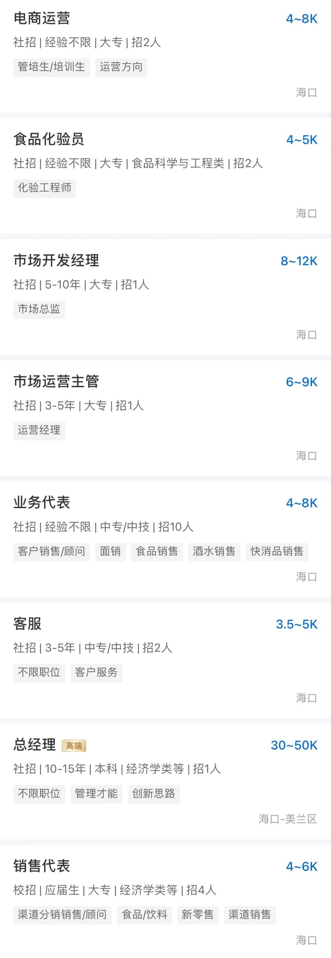 “海南有招”第一百三十三期来了! 海南南国食品实业有限公司 招聘23人 海南省种业实验室 招聘博士后10—20名 ↓↓↓ 01 海南南国食品