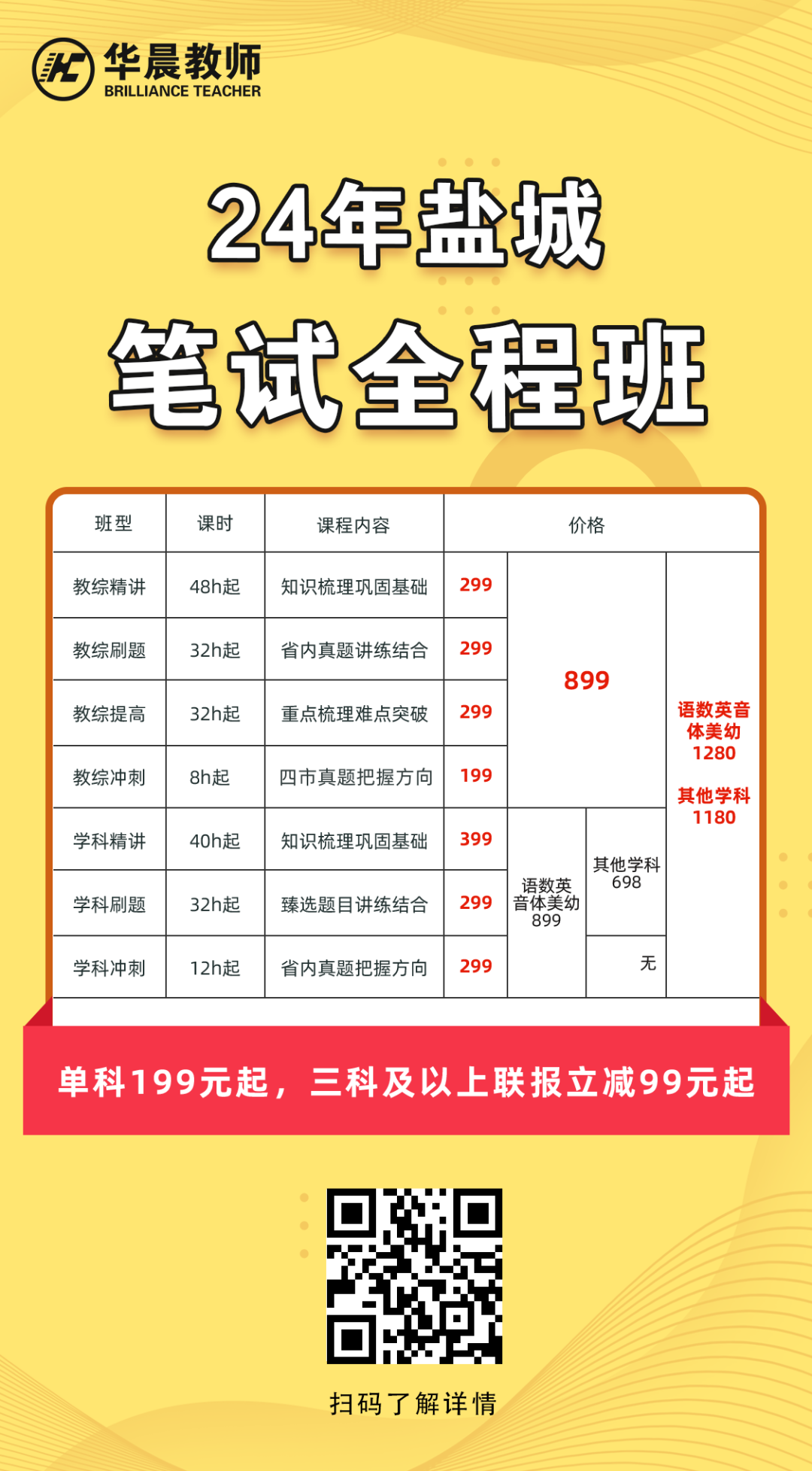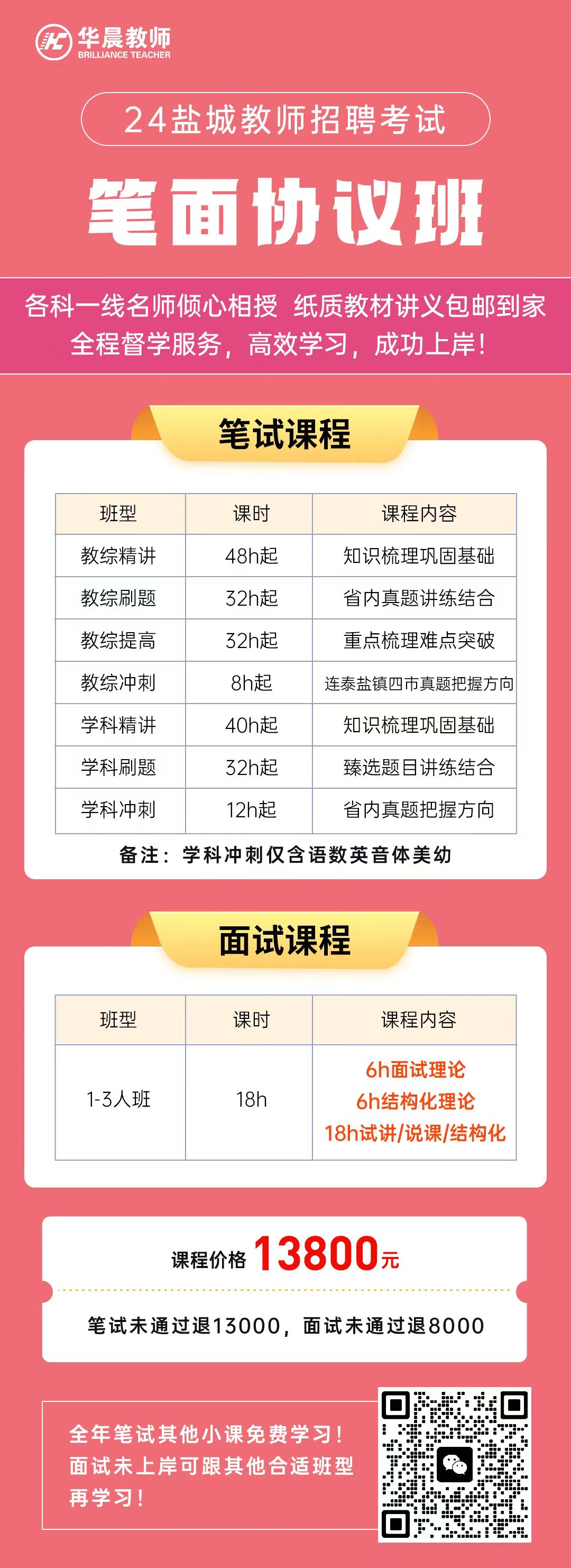 基础不牢固的同学报【学科通关班】¥898/698,讲练结合; 多地区备考直接选择【笔试全程班】¥1280/1180,教综学科都包含,省内通用。