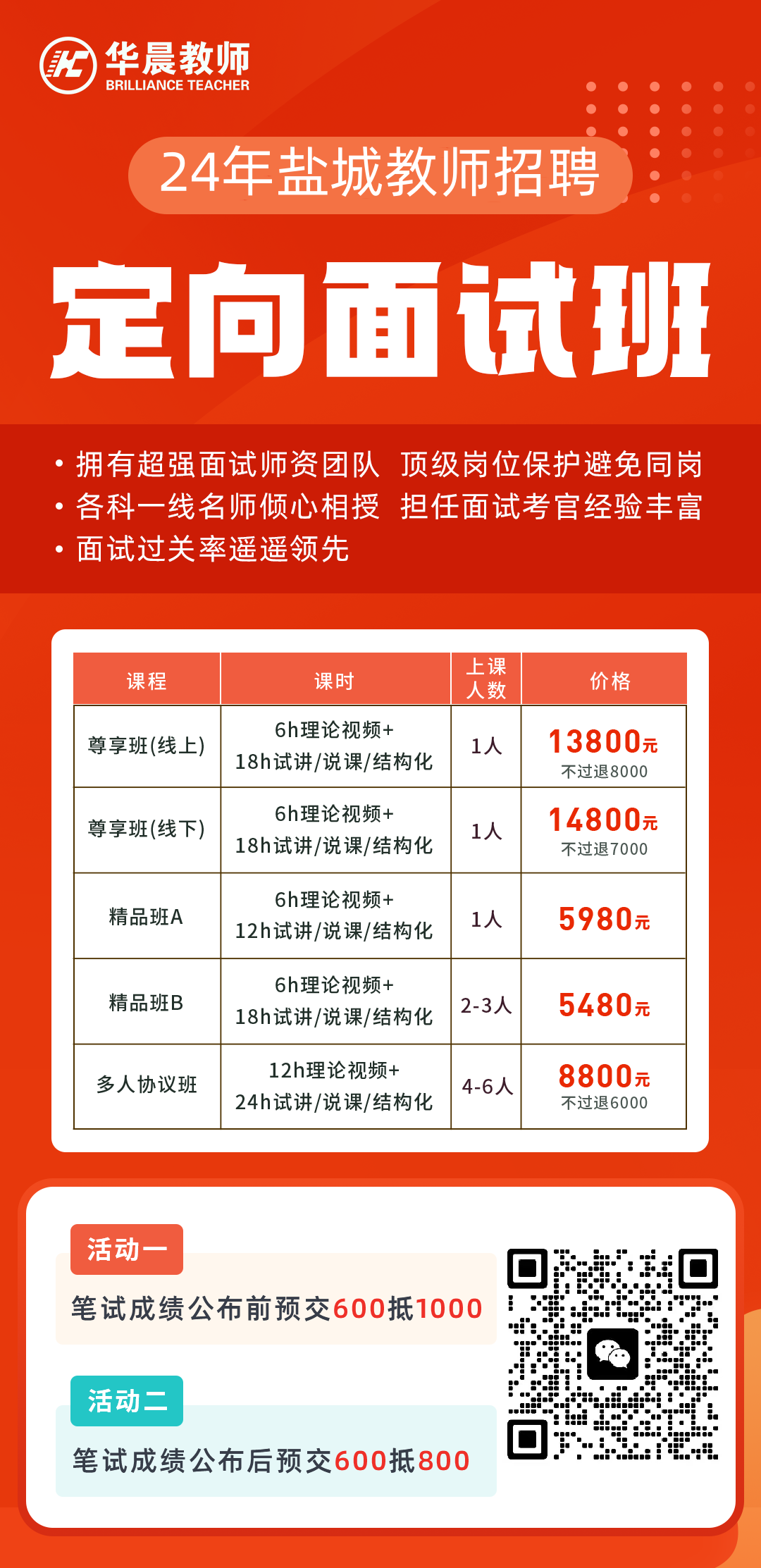 25届同学提前学,1480/1580学两年,咨询详情可以加施老师微信:18662083085 目前面试班所有班型均有线上、线下两种模式,线上全程可回放,线下包住宿。 凡是笔试成绩出来前报名面试培训,均可参与600抵1000,不限班型,不分地区。 盐城各区县单招,考情不固定,很多教综+学科都会考察(大丰、东台、市直属、经开... ...)。考情非一成不变,例如东台,往年只考学科,去年突然考了30分教综!没复习到的同学就吃了大亏!因此建议所有考生,全面准备,教综+学科同步备考!! |