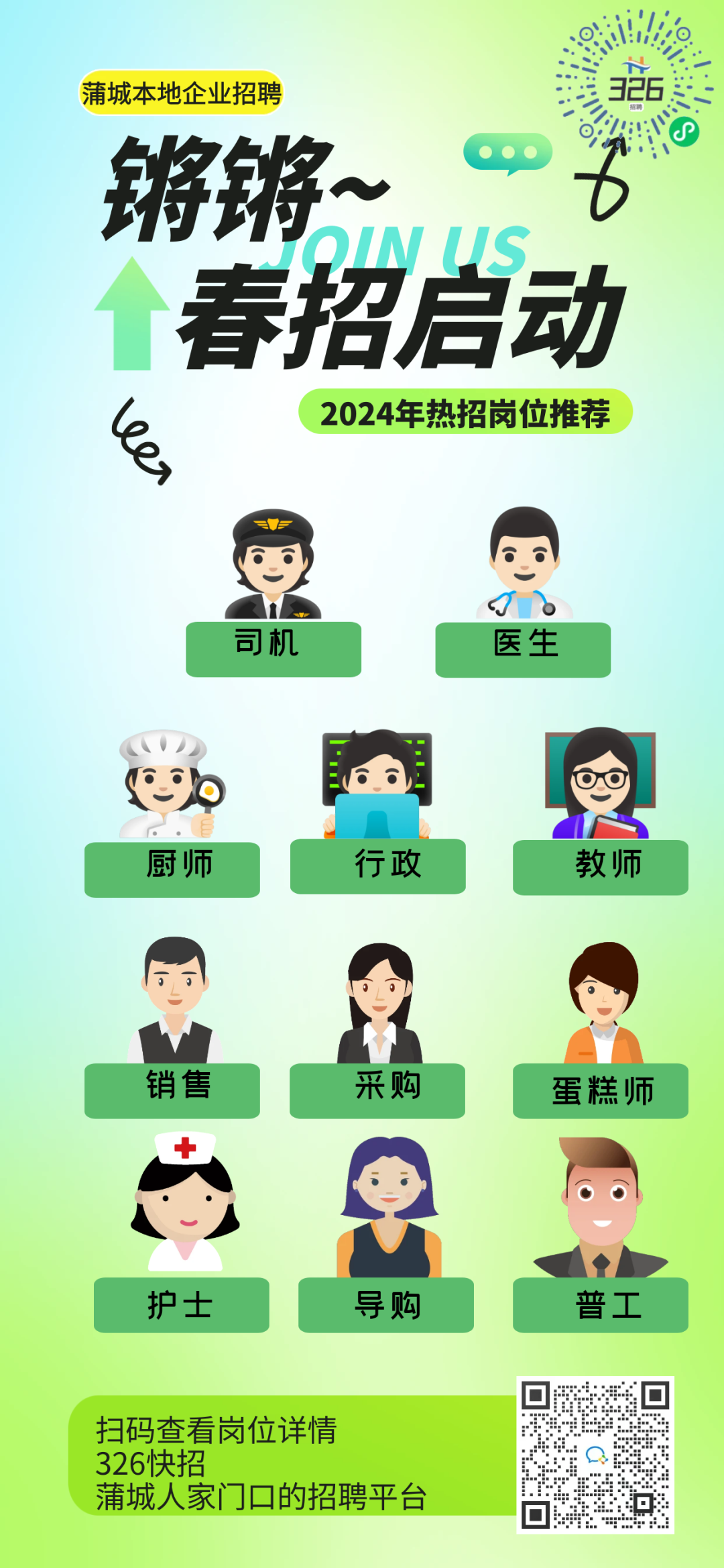 326快招 江苏博岳通讯股份有限公司 中国移动10086人工台接听|5人 4000+ 餐补话补 节日福利 10086客服 4000+/月 蒲城正缘商务酒店有限公司 热菜厨师、餐饮服务员、前台|10人 4000+ 不限学历 节日福利 餐饮服务员 4000+/月 热菜厨师 工资面议 前台收银 3000+/月 项目负责人 3000-10000元/月 职位要求 1、25-35周岁、大专及以上学历 2、两年以上业务工作经验; 3、善于沟通、责任心强、服从安排。 早教幼教、产康师 3000+/月 职位要求 1、18-35周岁、不限学历; 2、有2-3年早教工作经验; 3、有亲和力、负责任、有团队精神。 网约车司机 6000-7000元/月 职位要求 1、18-60周岁、不限学历; 2、C照、服从公司安排、责任心强; 网约车平台客服 2000+/月 职位要求 1、25-50周岁、不限学历; 2、有无经验均可、工作认真负责; 口腔医师 5000-6000元/月 职位要求 1、18-60周岁、大专及以上学历; 2、有1-2年以上工作经验、; 3、熟悉操作口腔常见疾病,敬岗爱业、身体健康; 教学老师 4000+/月 职位要求 1、25-35周岁、大专及以上学历; 2、辅导4-16岁青少年口才表演; 装修设计师 工资面议 职位要求 1、18-35周岁、不限学历; 2、有1-2年以上相关工作经验; 3、熟悉定制及装修设计; 美容师 工资面议 职位要求 1、25-50周岁、不限学历; 2、工作踏实认真、招长期工; 美团配送员 4000+/月 职位要求 1、18-60周岁、不限学历; 2、男女不限、自己有电动车或租赁; 3、会使用智能手机、具有客户服务意识; 业务经理 5000-6000元/月 职位要求 1、25-35周岁、高中及以上学历; 2、通过电话等方式挖掘客户、建立客情等; 托管辅导老师 2000+/月 职位要求 1、25-35周岁、高中及以上学历; 2、有1-2年以上工作经验; 3、对学生认真负责、爱护学生; 生产操作工 6000-7000元/月 职位要求 1、18-35周岁、大专及以上学历; 2、吃苦耐劳、有责任心、具有团队协作精神; 3、具有化工企业车间操作岗位工作经验有限; 幼儿教师 2000+/月 职位要求 1、25-50周岁、高中及以上学历; 2、有无经验均可、责任心强; 3、热爱幼教事业、爱孩子、爱学习; 办公室文员 工资面议 职位要求 1、18-35周岁、不限学历; 2、会使用Word、Excel等办公软件; 3、有良好的沟通能力; 顺丰快递