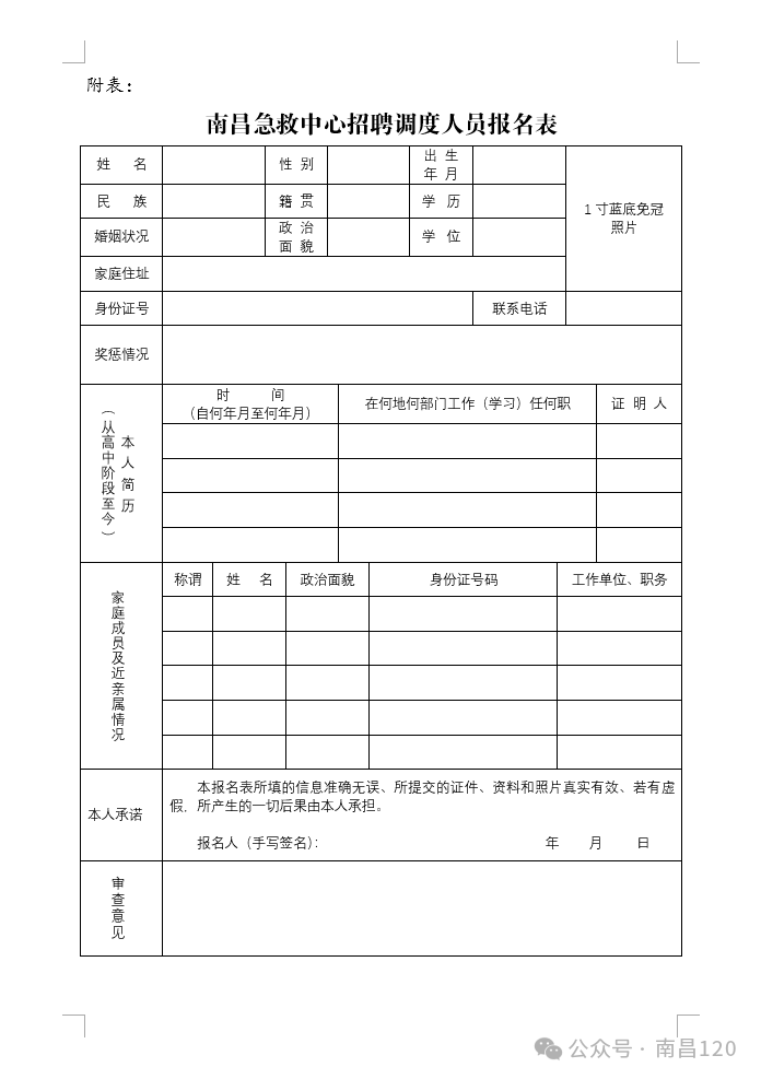 南昌急救中心隶属南昌市卫生健康委,全额拨款公益一类事业单位,承担我市300多万群众的日常院前医疗急救、突发事件紧急救援、重大会议活动的医疗保障、院间及长途转送等任务,履行全省各类人员和公众的院前急救培训以及院前急救质量控制中心职能。因工作需要,现需招聘编外调度人员,录用后与南昌急救中心签订劳动合同。为确保招聘工作顺利开展,具体招聘岗位、条件及待遇如下: 招聘工作严格按照“公开、平等、竞争、择优”原则,严格选拔聘用。 调度岗 1、遵纪守法,品行端正,为人正直,作风正派,廉洁自律; 2、能够熟练掌握OFFICE、WPS等计算机办公软件的操作,具有良好的语言表达能力、沟通协调能力,个人综合素质佳; 3、南昌市城区户口,能够听懂地方方言; 4、工作耐心细致负责,能够认真完成岗位工作及其它交办的工作; 5、能够接受调度岗位作息时间,有临时或突发任务时可及时到岗,工作需要时可接受值班、加班、调班工作; 6、拥有正常履行职责的身体条件,符合机关事业单位有关体检要求。 (一)试用期 试用期两个月:岗位工资1000元/月,月绩效工资1000元/月,月基础性绩效奖1000元/月。 (二)正式聘用期 1、岗位工资:1200元/月 2、月绩效工资:按月考核计,约2000元/月 3、月基础性绩效奖:1200/月 4、其他福利待遇:五险一金,定期体检,工会福利(工会会员),提供工作餐等。 (一)报名时间:2024年3月12日至2024年3月20日下午17:00截止。 (二)报名方式:邮件投递,具体方式如下: 请考生在报名时限内将应聘材料打包发送至南昌急救中心邮箱:ncjjzxbgs@sina.com。(邮件主题命名为“南昌急救中心+调度岗+姓名”邮件应包含以下材料: 1、下载《南昌急救中心招聘编外调度人员报名表》(下载网址:http://nanchang.jjzx120.cn/kindeditor/attached/file/20240312/20240312090151_2990.docx),签名扫描。