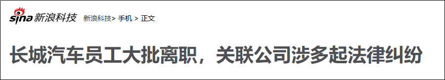 3月12日,长城汽车员工大批离职的消息引发行业关注。长城汽车员工大批离职的现象确实存在。春节前后,长城汽车品牌公司(包含哈弗、魏、坦克、欧拉等品牌)有多位中高层员工主动提出离职,其中至少有三位副总级别高层员工和超十位科长、部长(总监、高级总监)级干部。这一波离职员工中,有入职最短至2个月甚至7天的新人,也有超过10年、20年的老员工。