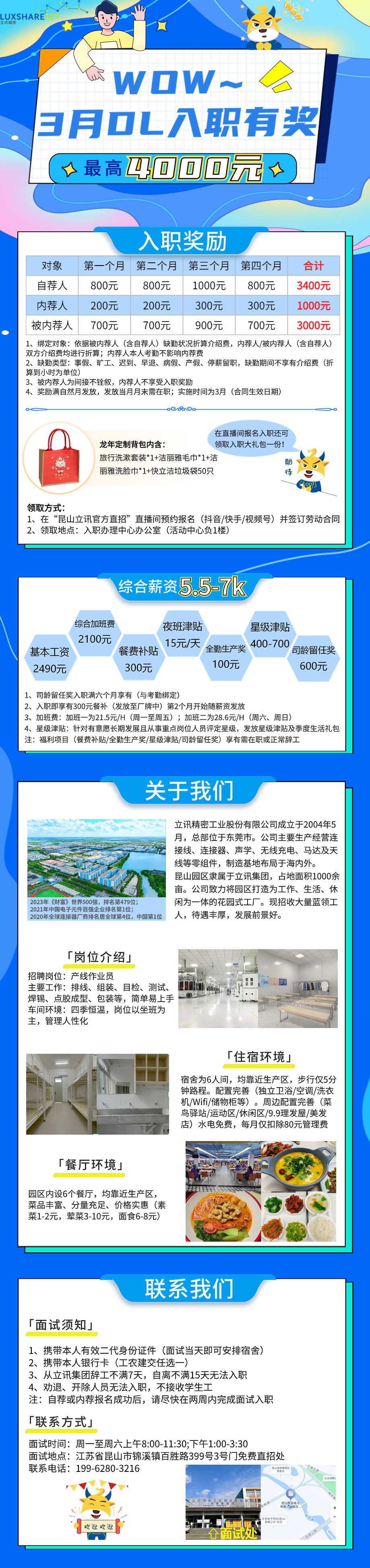 >【DL火热招募中】最高奖励4000元+餐补预充值+当天安排住宿!