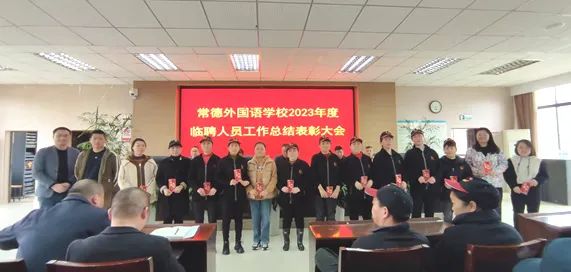 为表彰先进,进一步提升学校后勤服务工作品质,3月14日下午,常德外国语学校2023年度临聘人员工作总结表彰大会在四楼大会议室举行。学校领导、后勤服务人员及相关负责人参加了会议。大会由学校纪委书记唐文武主持。