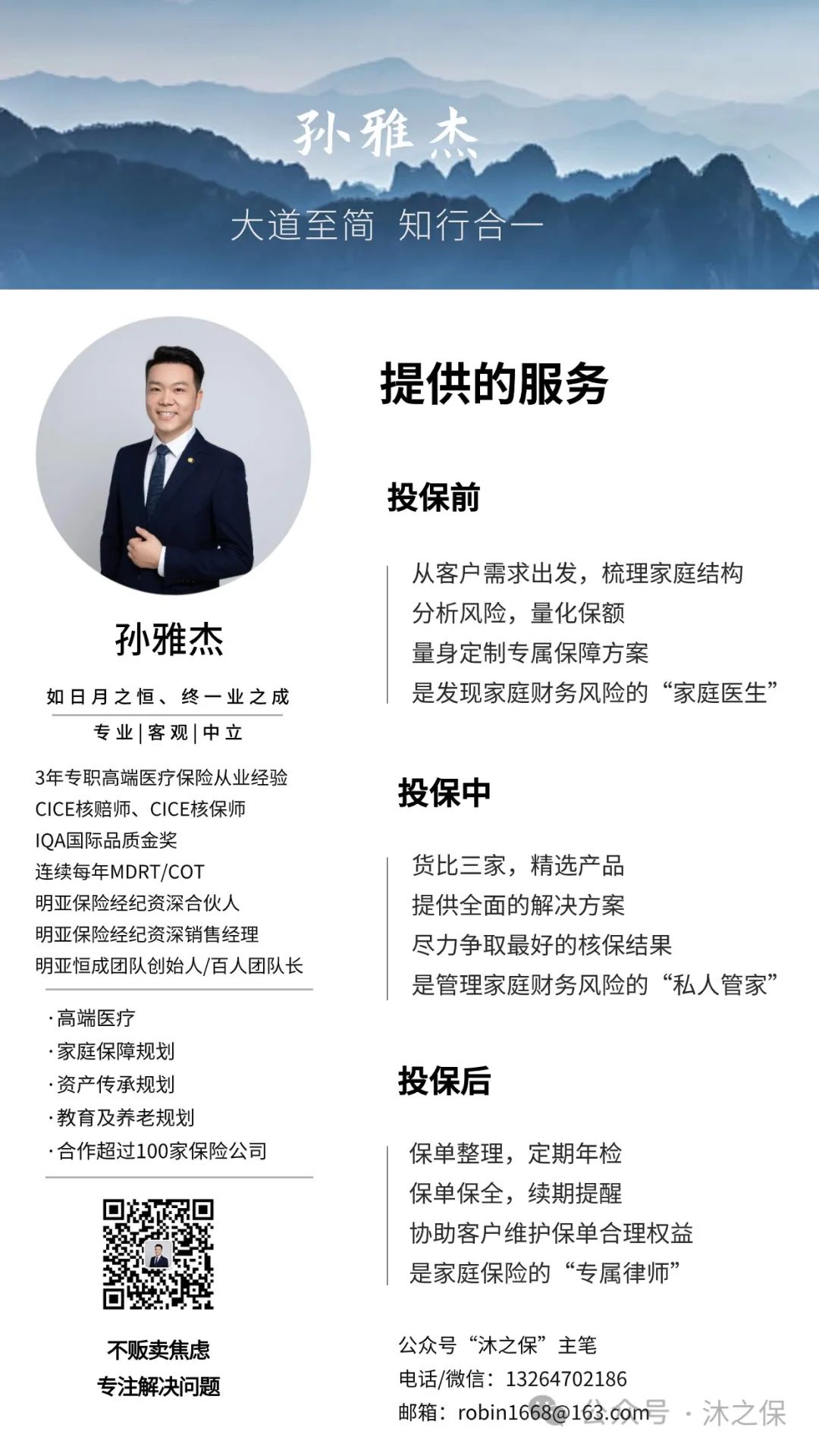 我: 资深独立保险经纪人,用长期主义的心态,知行合一的做事,认真,负责,专业的服务好每一个信任我的客户。 3年的高端医疗保险经纪人从业经历,明亚保险经纪资深合伙人/资深销售经理、COT, 较积极向上,跟每个客户一起终身成长。