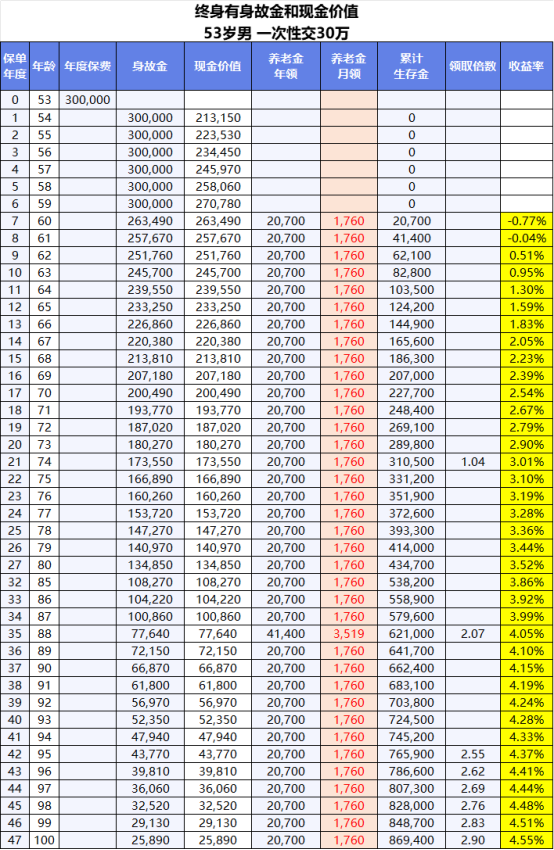所以,杨工认为这款年金综合性最好了,领取金额不错,现金价值和身故金也非常友好。