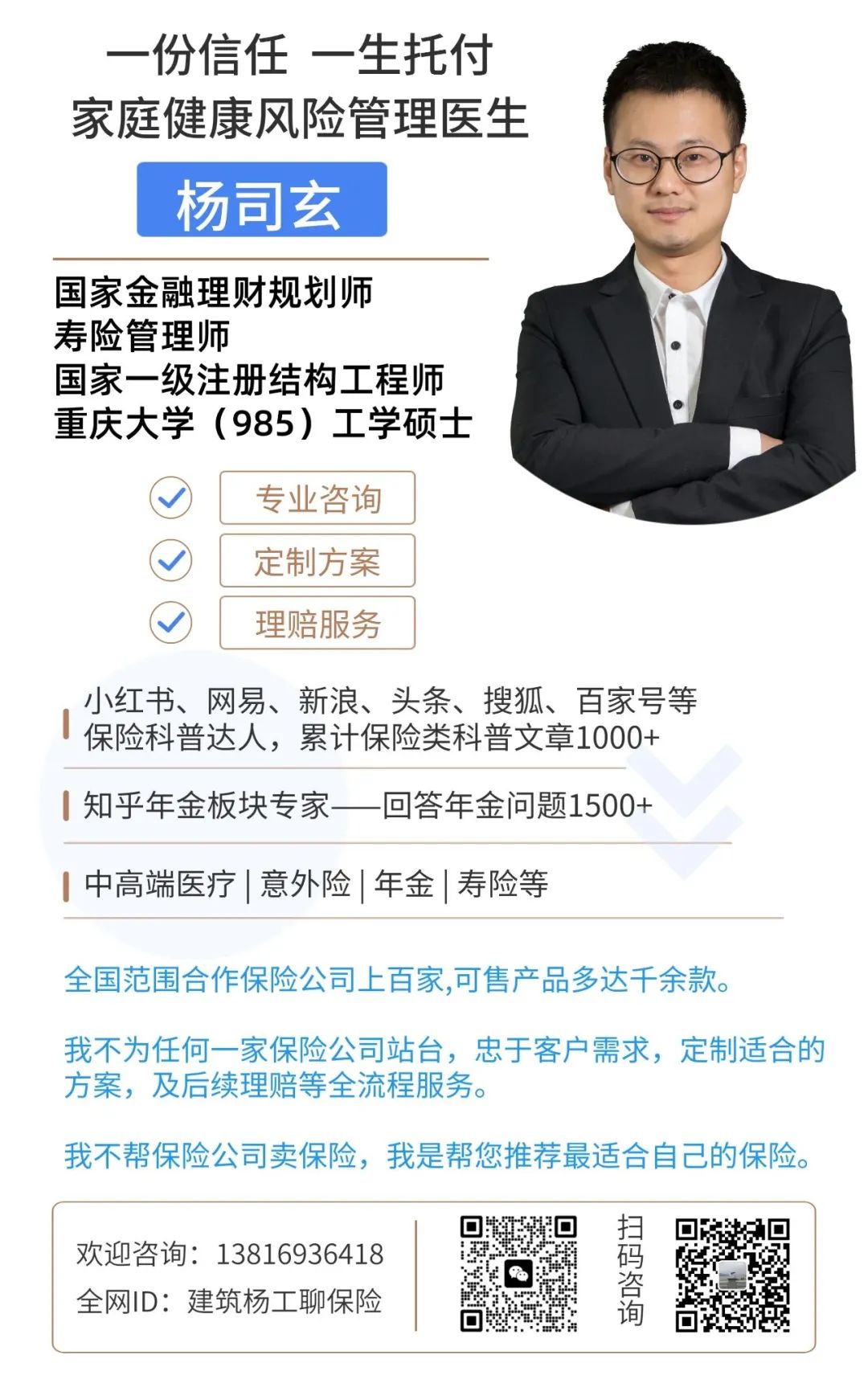 我是建筑杨工,专注于年金险。测评了市面上数百款年金。