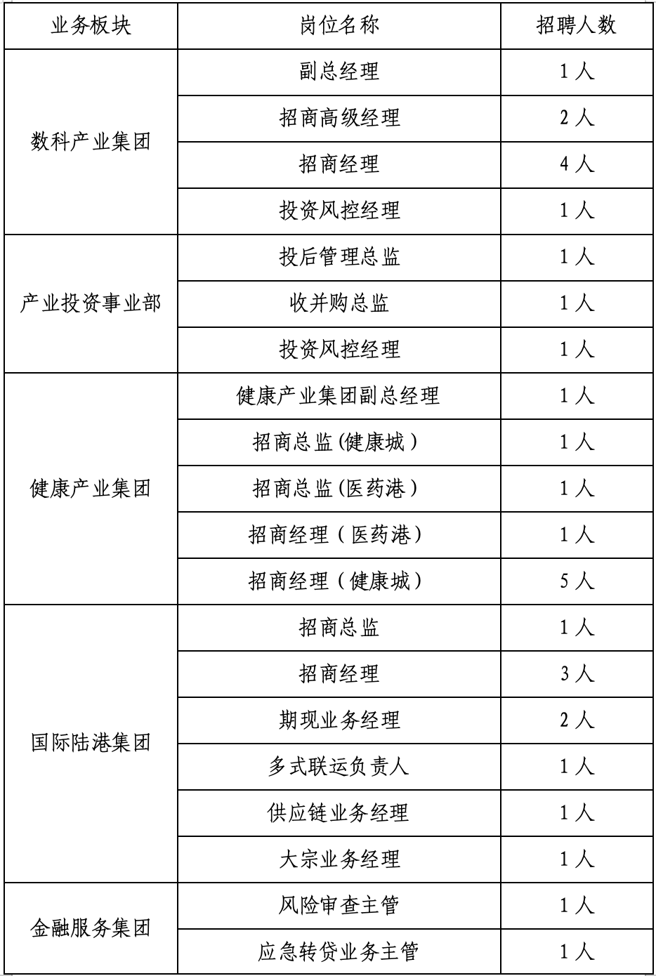 根据集团人才强企的战略布局,为实现人力资源的最优配置,优化组织运营效率,推动集团持续、健康发展,集团决定现面向社会进行产业类人才公开招聘,有关事项公告如下:
