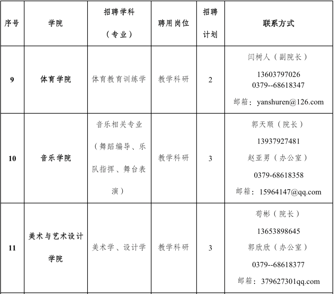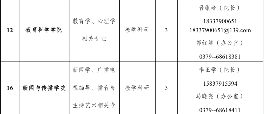联系人:详见招聘计划表中各二级院(部)联系人