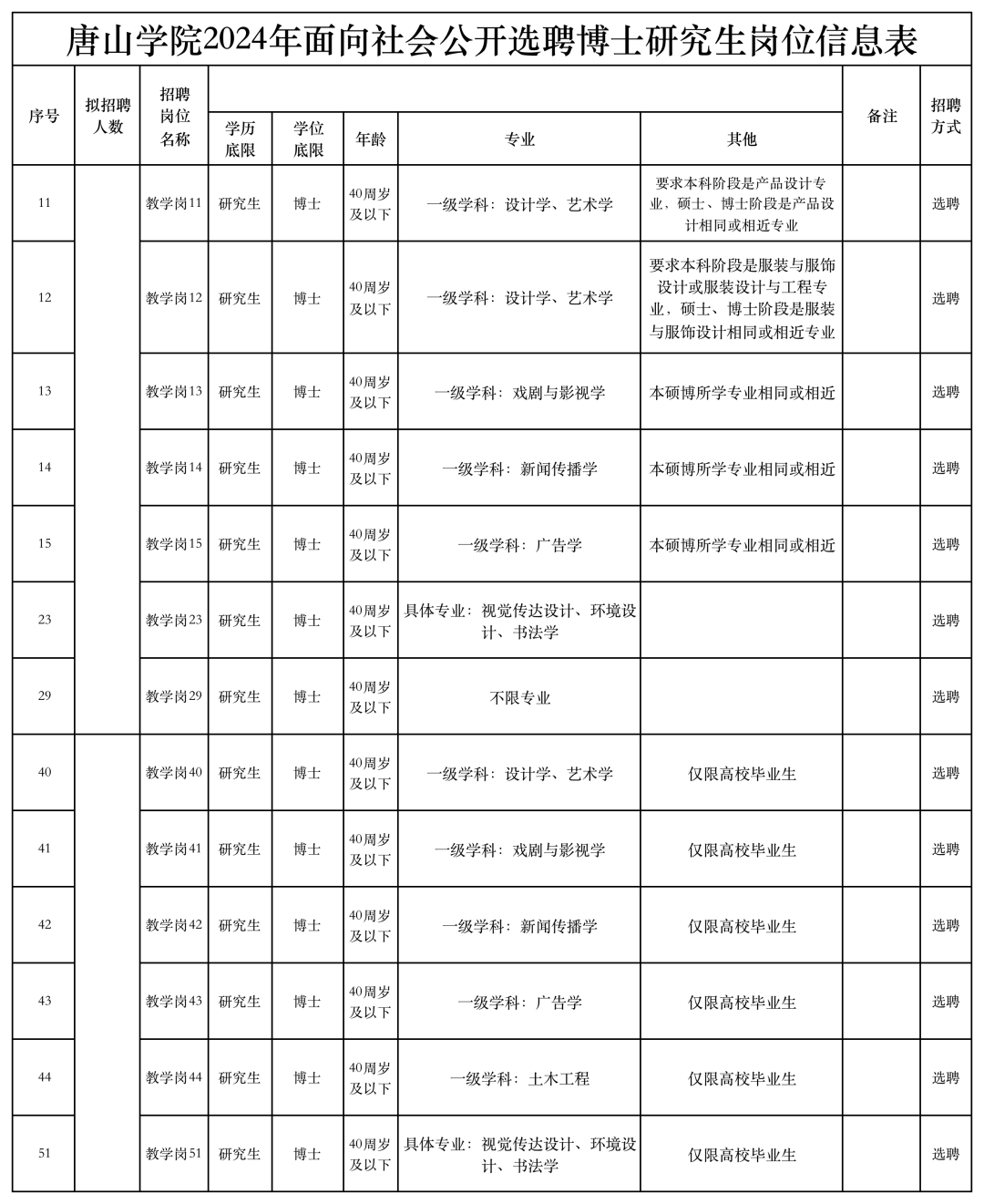公布招聘的岗位、人数、条件以及报名、面试安排等。在选聘过程中的重要通知事项,将通过唐山学院人事处网站(https://rsc.tsc.edu.cn/)通知公告专栏发布,请报名人员及时关注。