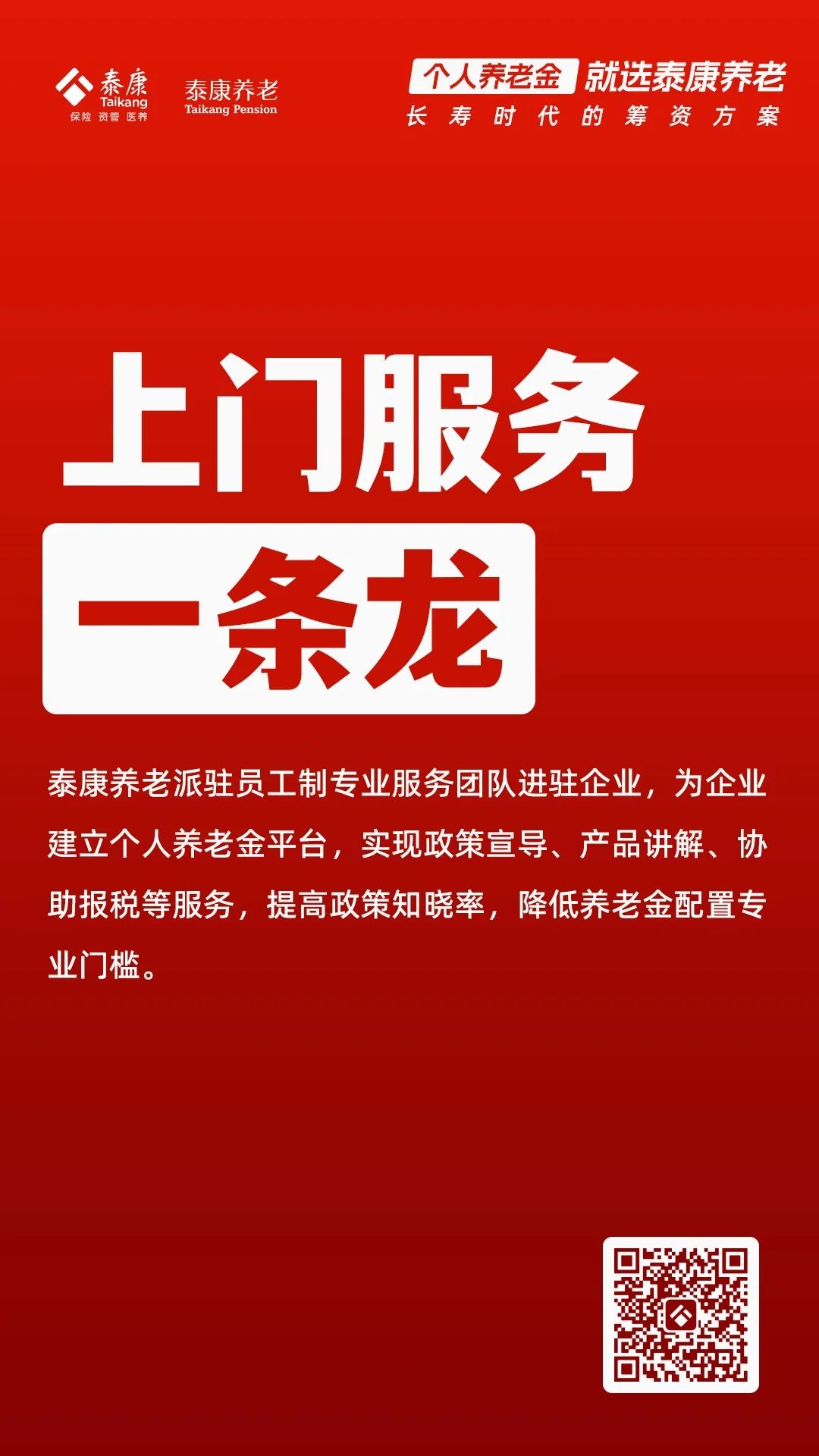 泰康养老紧跟国家政策步伐,全力推进多层次养老保险体系的建设,通过职域模式提供“一条龙”上门服务,提升企业内部对政策的认知度,降低个人养老金配置门槛。同时,泰康养老专注于为客户提供长期、安全、稳健的优质产品,帮助客户轻松享受税收优惠和政策福利,为品质养老提供全面保障。