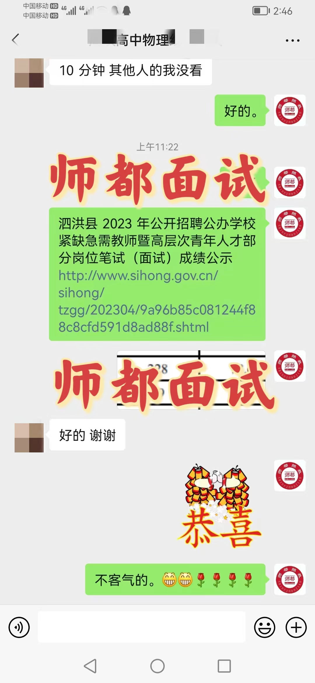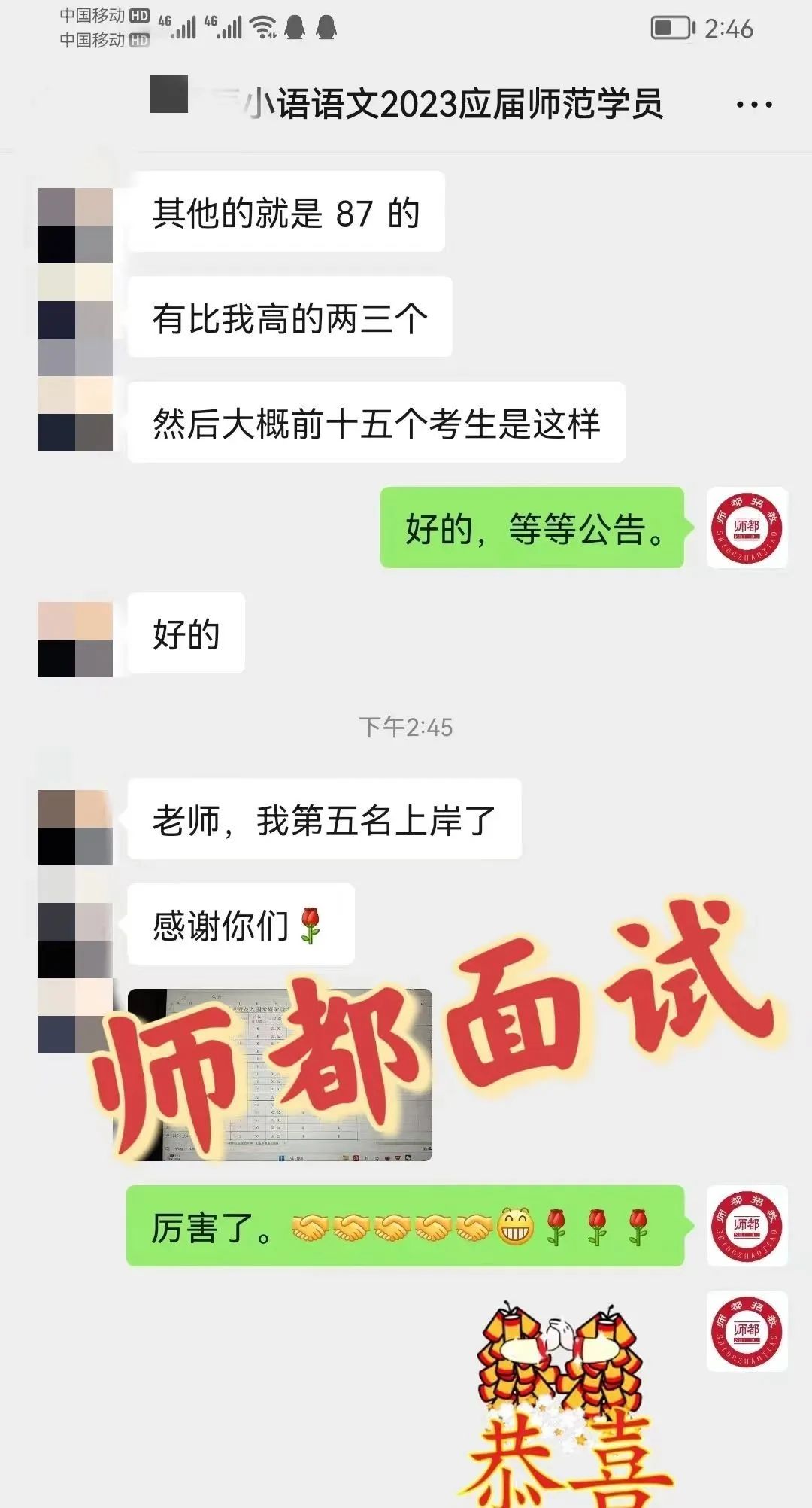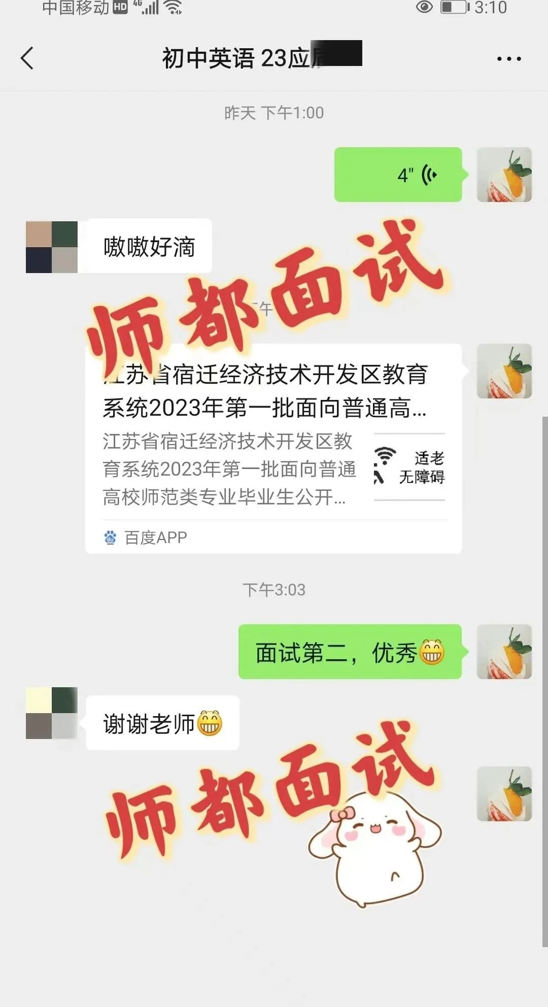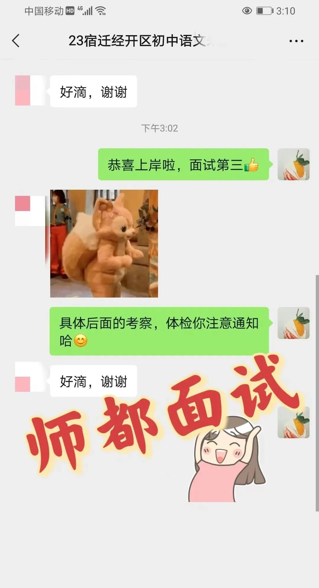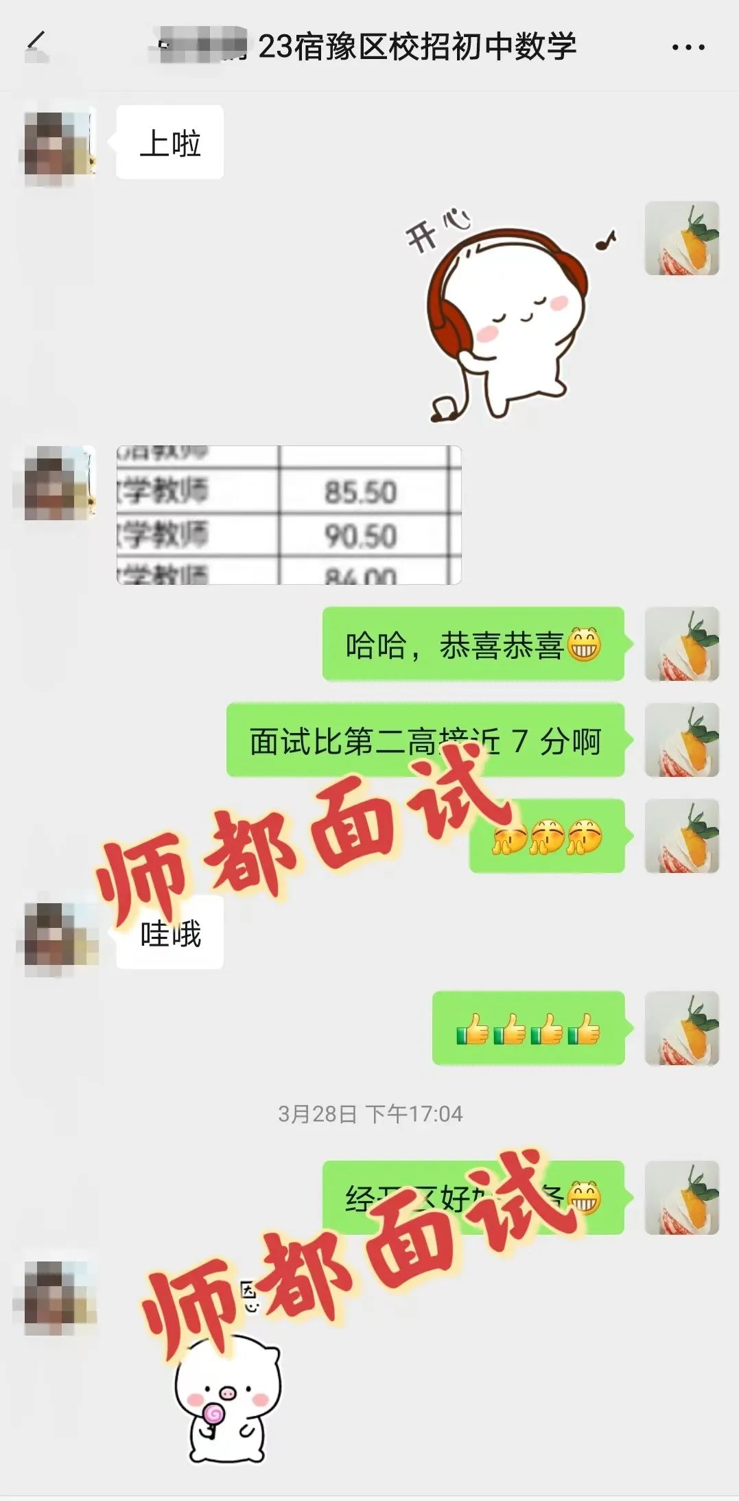 师都专注教师!更了解考情!不仅宿迁地区取得了优异的成绩(教师社会招聘,校招,中专),此外,徐州,淮安,苏州,南通,泰州,盐城,镇江等均有上岸学员!面试选师都!师都与坚持梦想者同行!