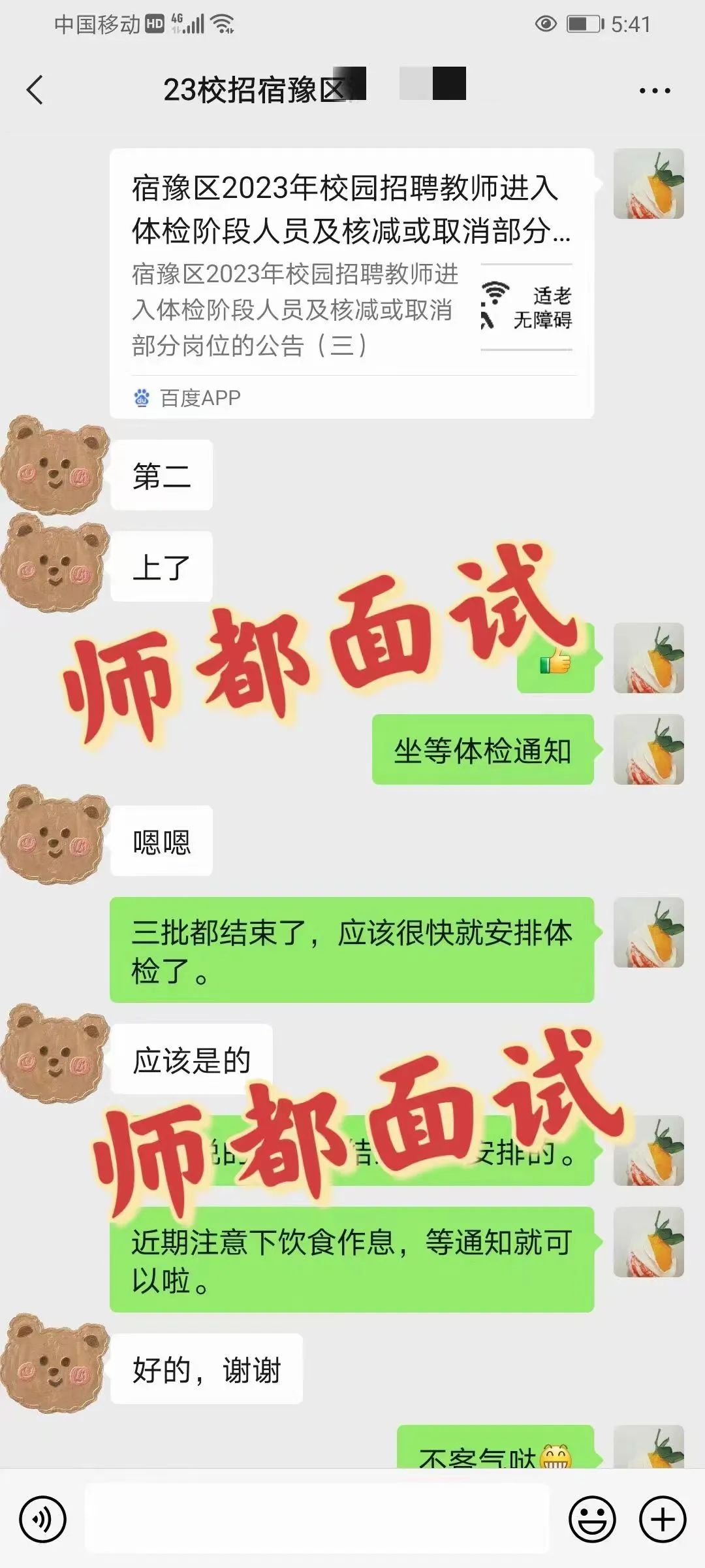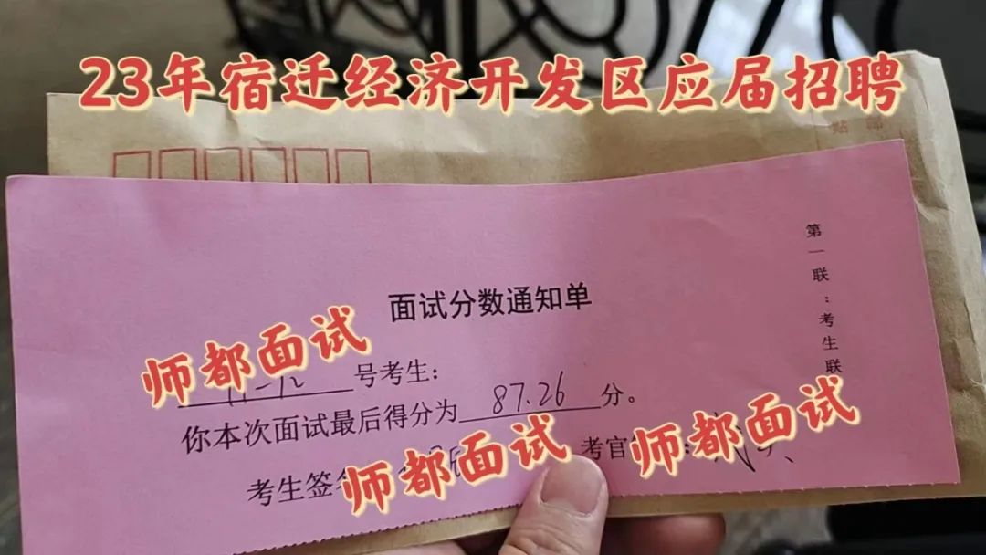 宿迁市宿城区2024年面向普通高校师范类专业毕业生公开招聘教师面试工作已经结束,现将面试成绩及入围考察阶段考生名单予以公布。考察时间另行通知,请考生保持通讯畅通。